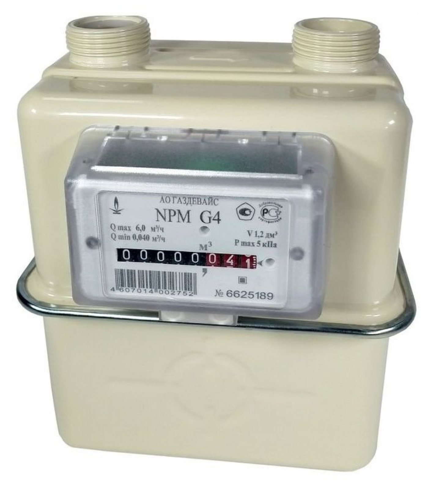 Счетчики газа NPM типоразмера G4, предназначены для измерения объема газа низкого давления в жилищно-коммунальном хозяйстве и быту (сжиженный газ ГОСТ 20448, нефтяной газ, крекинг-газ, природный газ ГОСТ 5542)