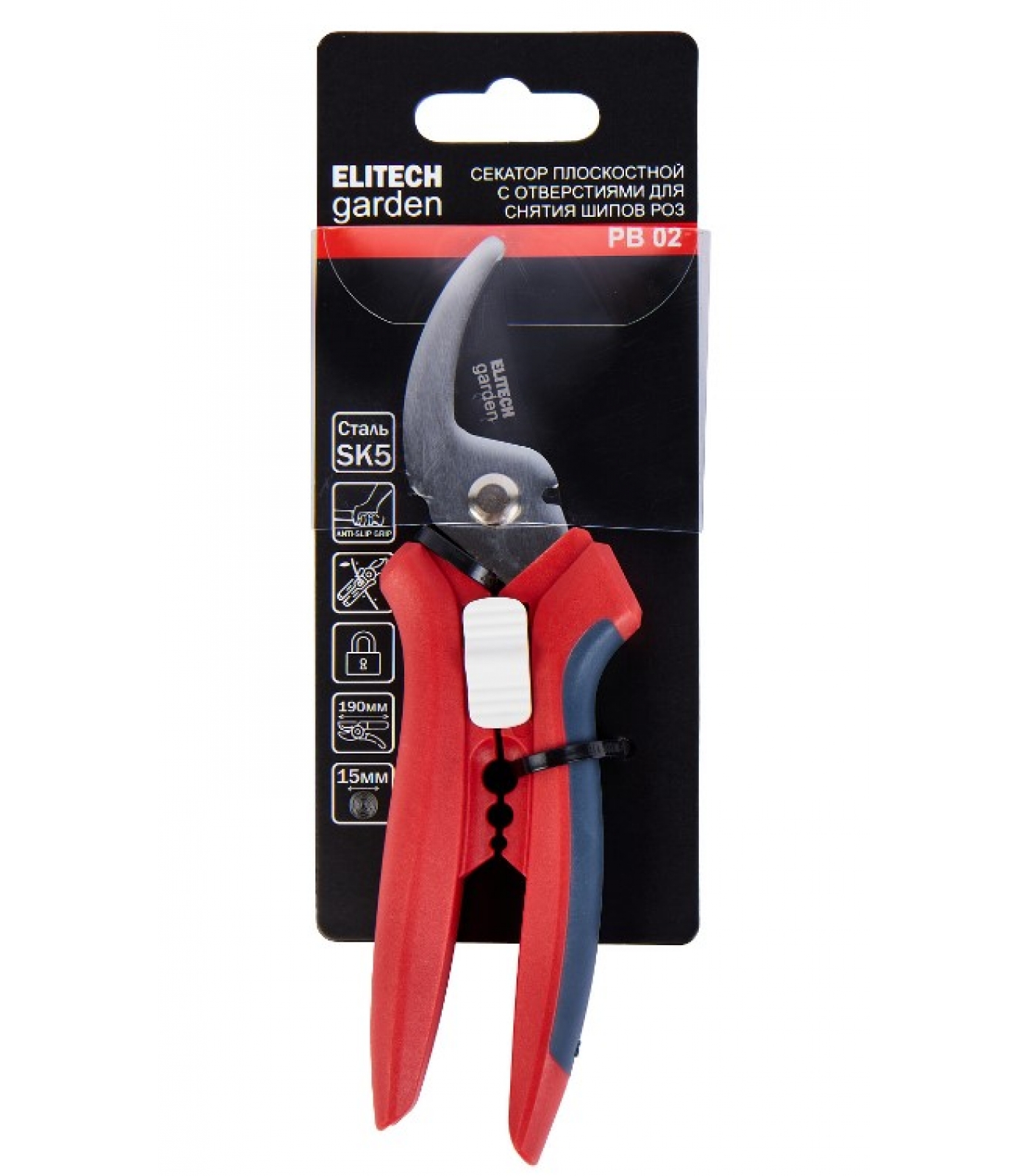Секатор Elitech Garden PB02 плоскостной, с отверстиями для снятия шипов роз
