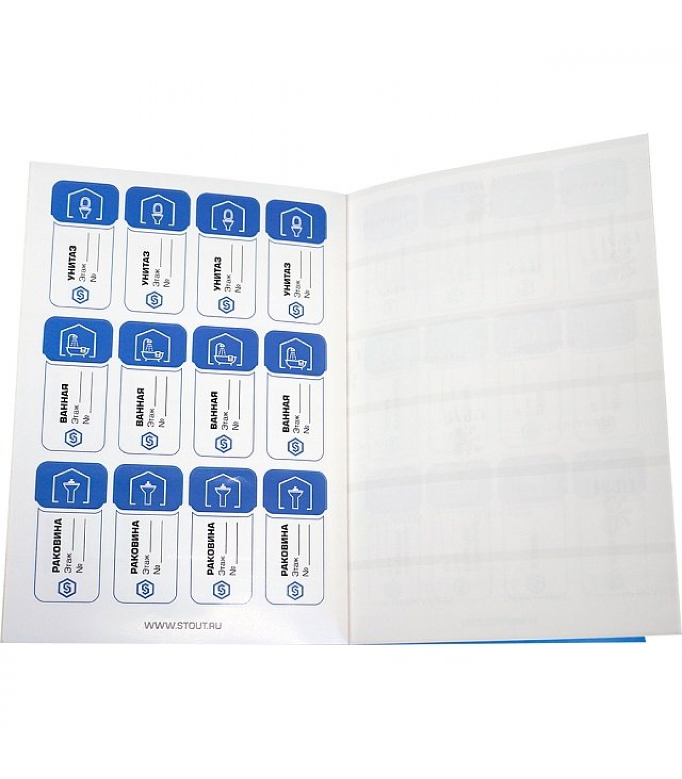 (SFA-0037-300000) Набор сантехнических наклеек "Водоснабжение" выполнен в виде альбома с наклейками "Ванная", "Унитаз", "Раковина" и т. д., что позволяет промаркировать отдельные потребители воды при разводке водоснабжения. Наклейки можно разместить, например, на защитных сантехнических втулках.