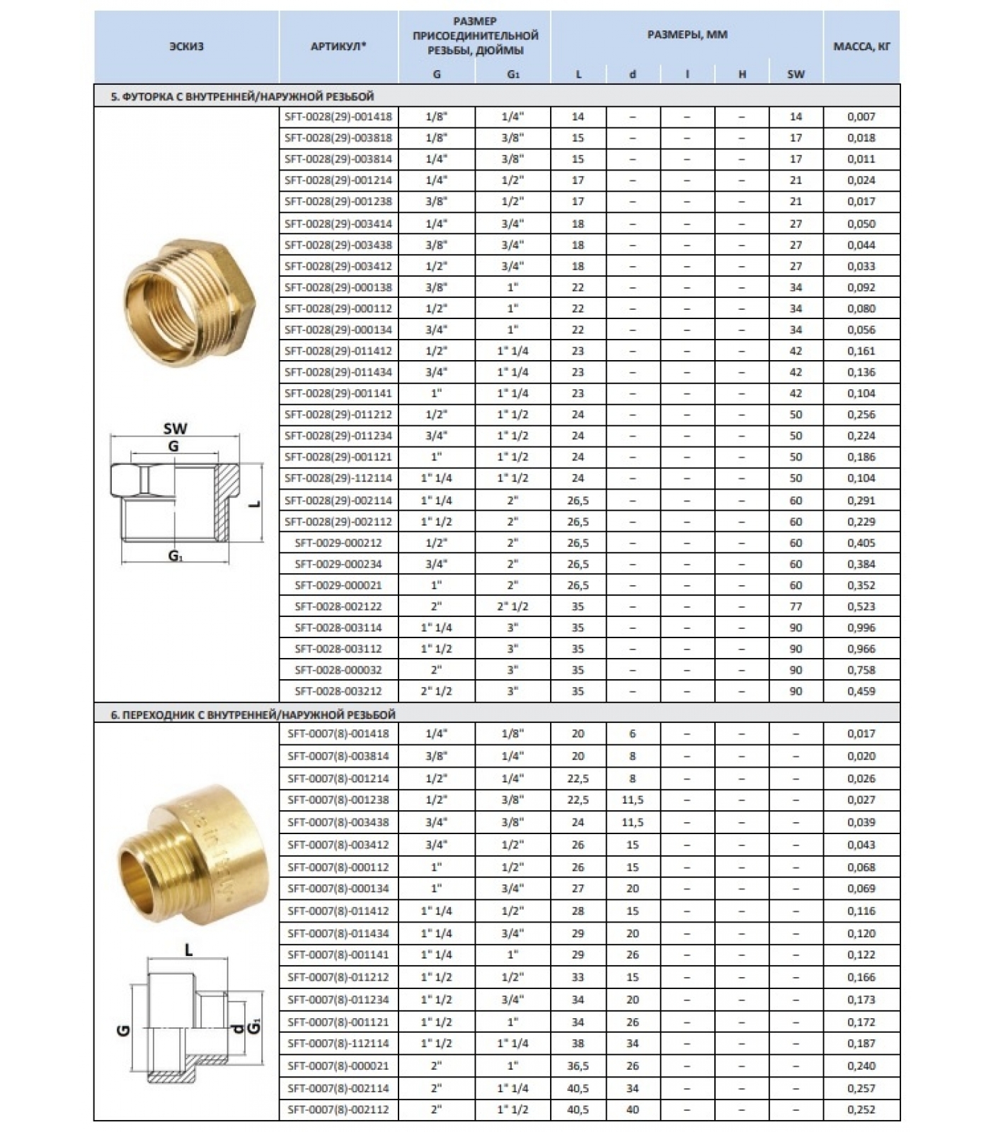 Тип резьбы внутренняя, наружная