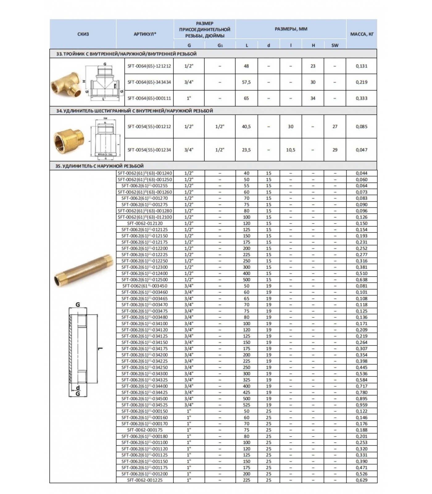 Подгруппа Резьбовые латунные фитинги
