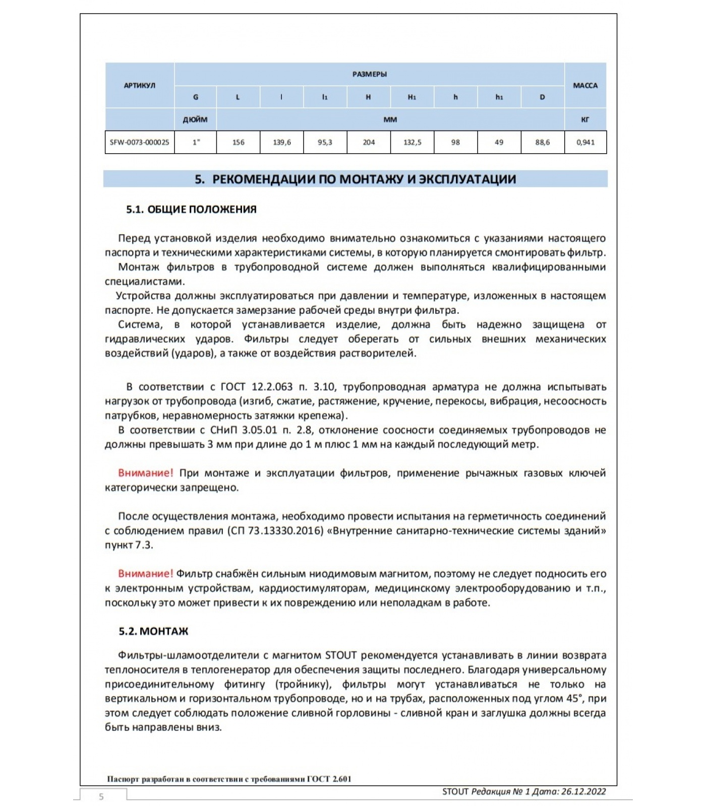 SFW-0073-000025 STOUT Шламоотделитель с магнитом и циклонным фильтром, 1" ВН