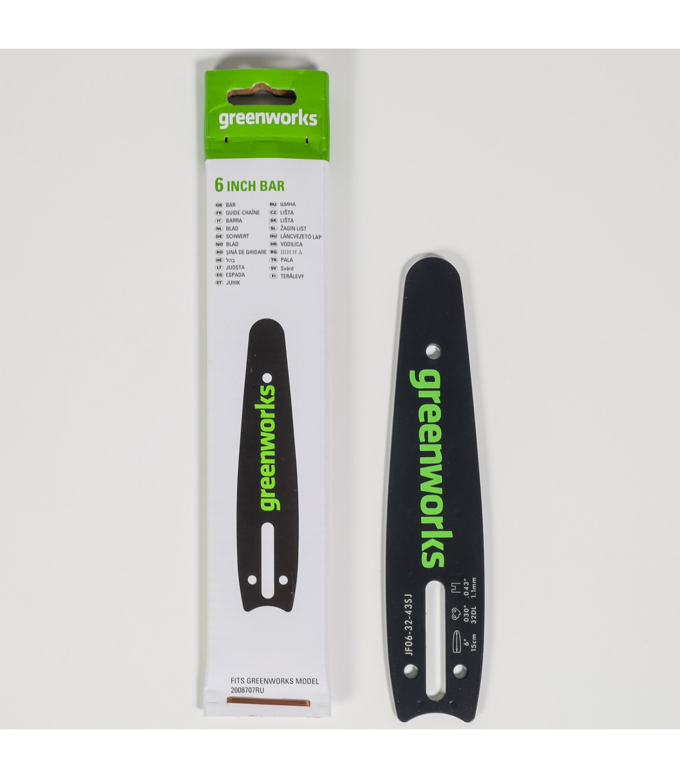 Длина шины 15 см (6"). Паз шины 1,1 мм (0,043"), для цепи с количеством звеньев 32.