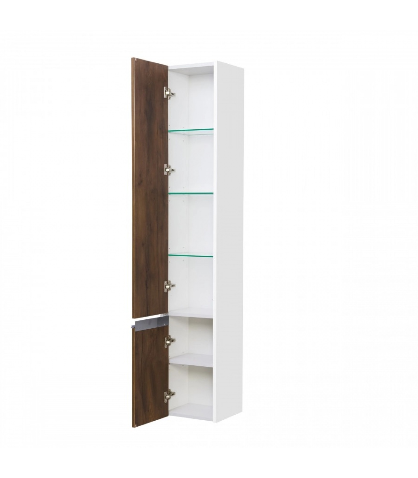 Подвесной шкаф-колонна Капри решен в современном стиле. Обращают на себя внимание глянцевые хромированные профильные ручки, которые не только удобны в использовании, но служат также и украшением фасада. Фасад изделия выполнен из высококачественной влагостойкой ЛДСП в цвете "таксония темная", что полностью защищает поверхность от внешних воздействий. Петли дверей расположены слева и оснащены интегрированным механизмом плавного довода, гарантируя безупречную работу и длительный срок службы.