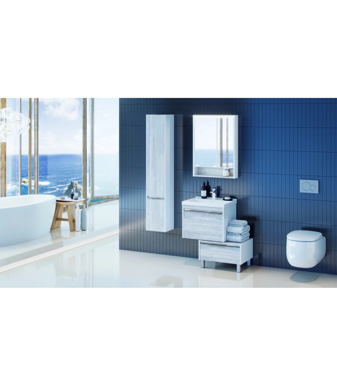 Подвесной шкаф-колонна Капри решен в современном стиле. Обращают на себя внимание глянцевые хромированные профильные ручки, которые не только удобны в использовании, но служат также и украшением фасада. Фасад изделия выполнен из высококачественной влагостойкой ЛДСП в цвете "бетон пайн", что полностью защищает поверхность от внешних воздействий. Петли дверей расположены правый и оснащены интегрированным механизмом плавного довода, гарантируя безупречную работу и длительный срок службы.