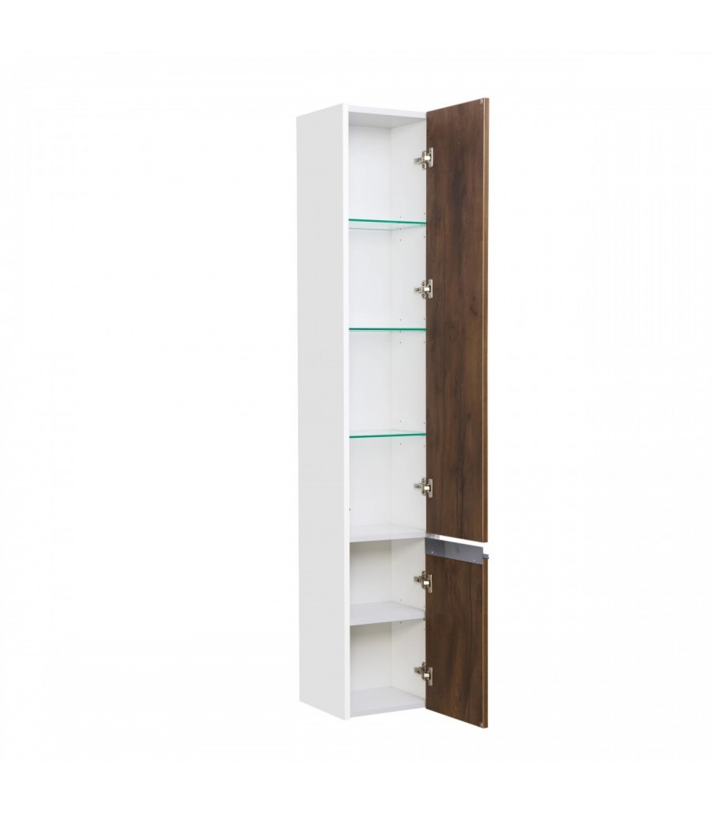 Подвесной шкаф-колонна Капри решен в современном стиле. Обращают на себя внимание глянцевые хромированные профильные ручки, которые не только удобны в использовании, но служат также и украшением фасада. Фасад изделия выполнен из высококачественной влагостойкой ЛДСП в цвете "таксония темная", что полностью защищает поверхность от внешних воздействий. Петли дверей расположены справа и оснащены интегрированным механизмом плавного довода, гарантируя безупречную работу и длительный срок службы.