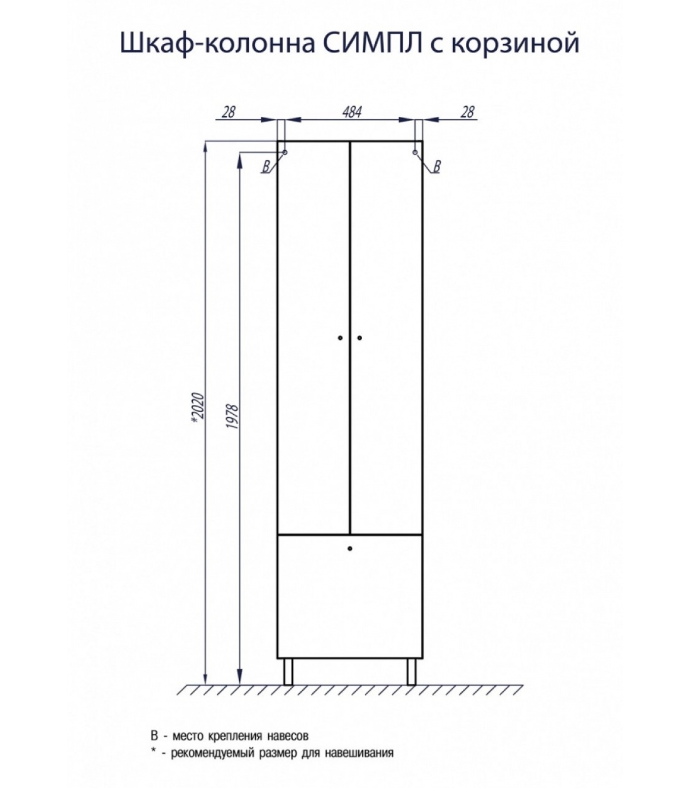 Шкаф-колонна Симпл двустворчатый с бельевой корзиной лаконично впишется в интерьер ванной комнаты. Изделие выполнено из влагостойких материалов, которые надолго сохраняют первозданный внешний вид. Теперь хранить гигиенические принадлежности и поддерживать порядок будет легко и просто!