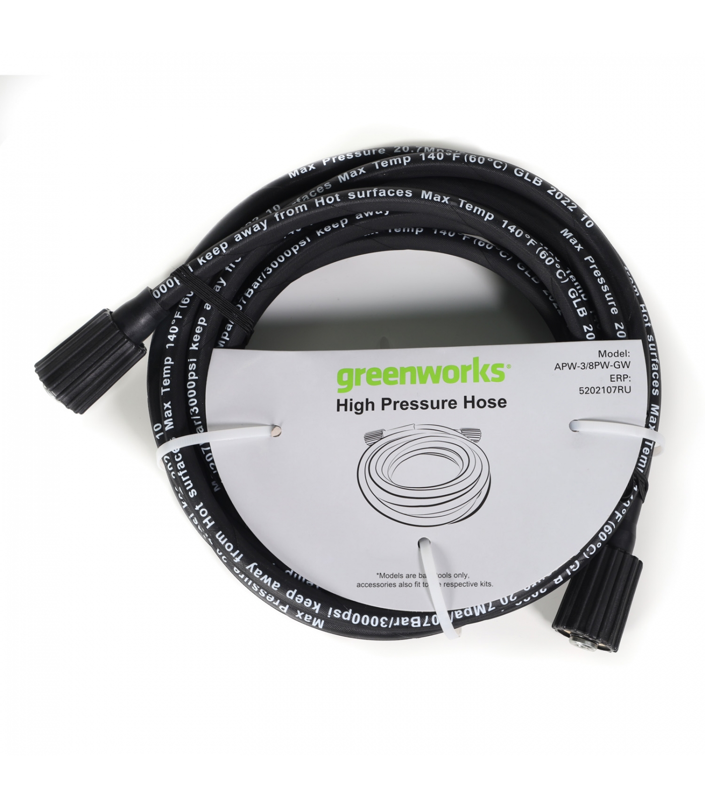 Шланг 7,6 м для мойки высокого давления Greenworks, резиновый армированный сталью.
