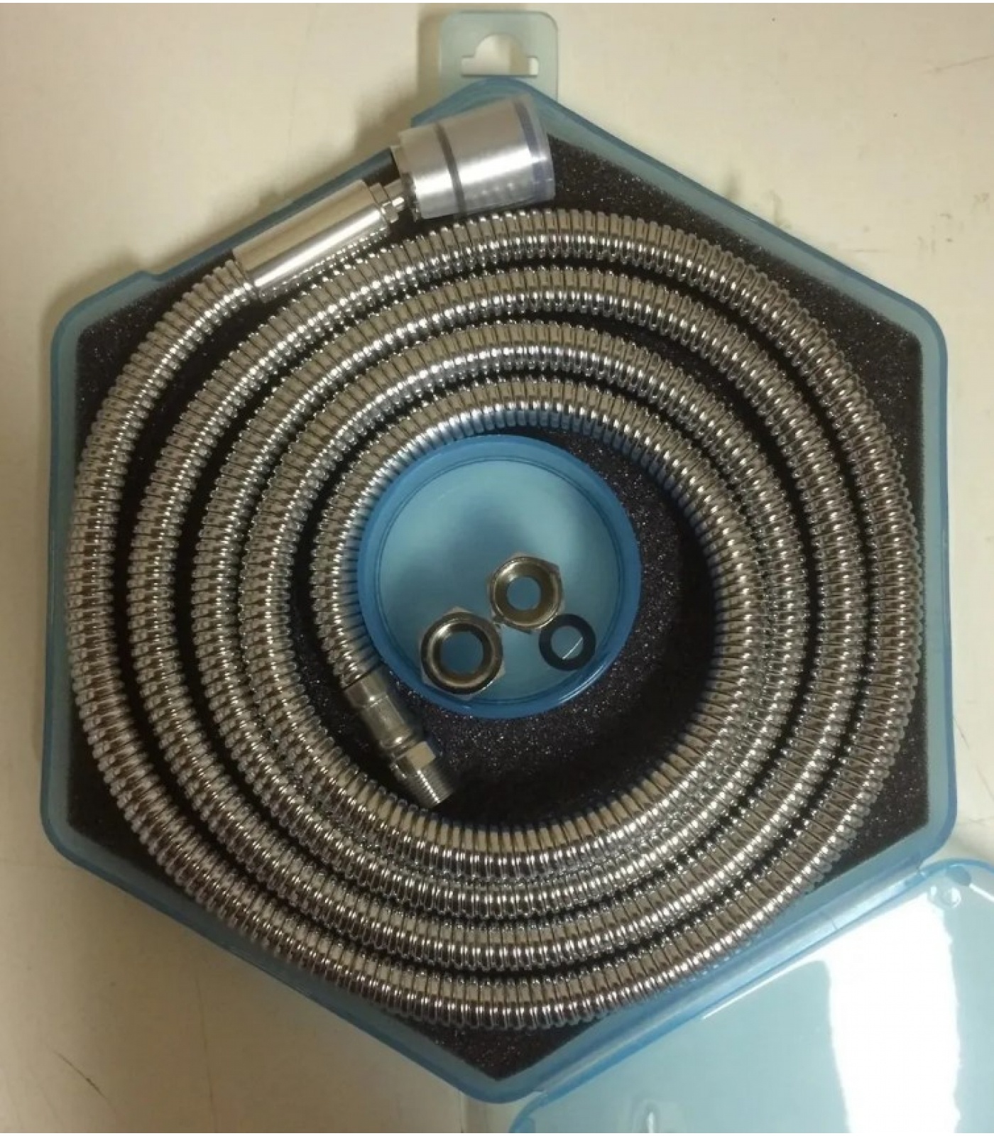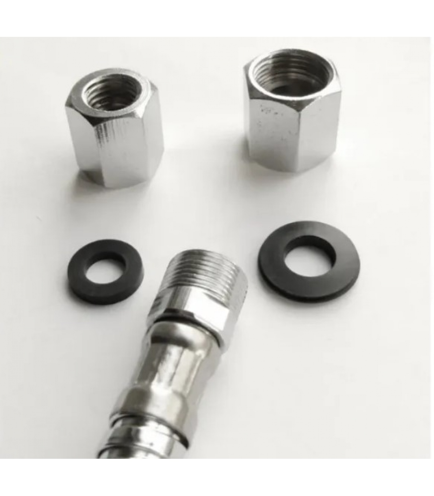 В комплекте с выдвижным универсальным шлангом идут два переходника с резьбой 3\8'*F15 и F15*F12, что позволяет подключать шланг к абсолютному большинству смесителей в ванной и на кухне. Металлическая оплетка шланга для смесителя покрыта прочным блестящим хромом.