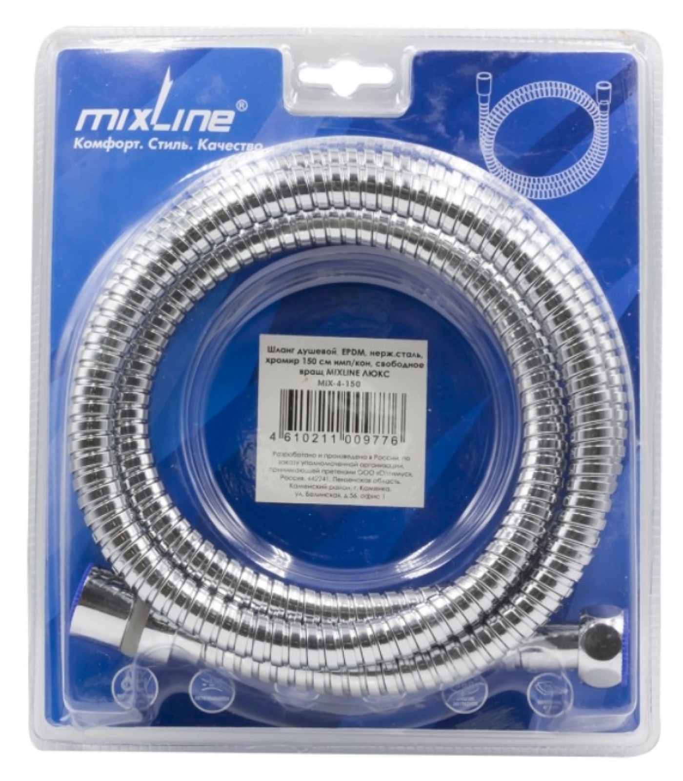 Шланг для душа Mixline MIX-4-150, свободное вращение, нержавеющая сталь, хром