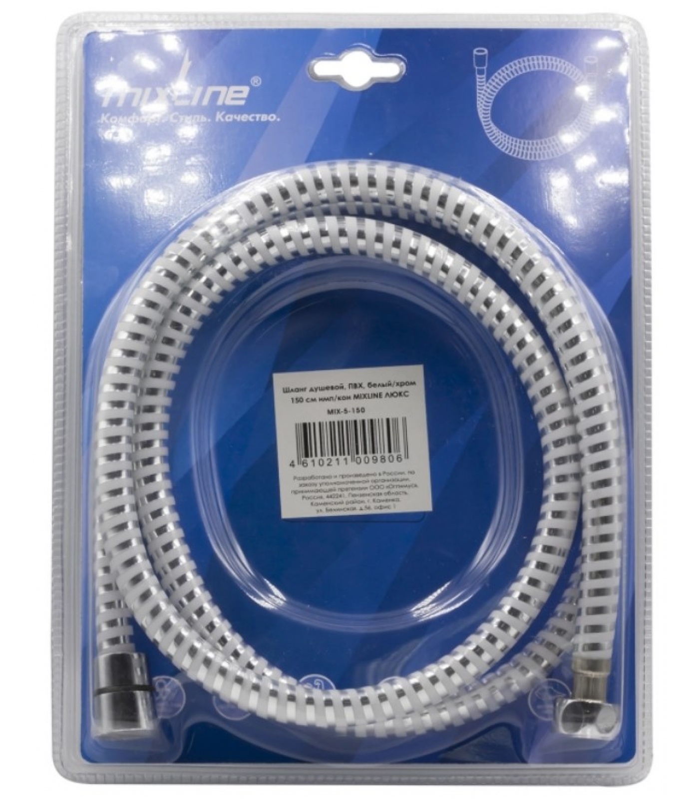 Шланг для душа Mixline MIX-5-150, ПВХ, хром/белый