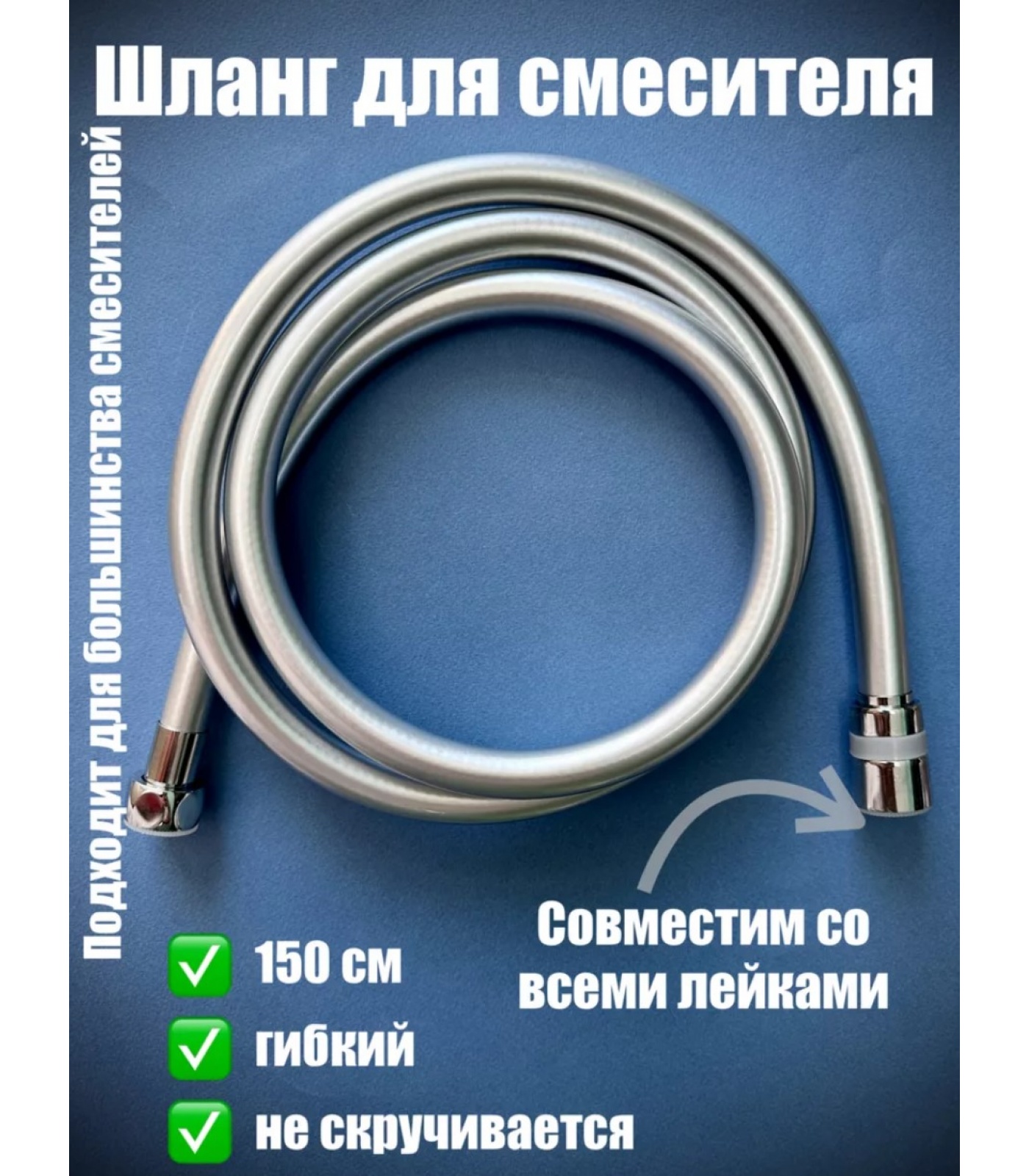 Шланг для душа Valfex VF.44-2, 150 см, ПВХ, свободное вращение, серый металлик