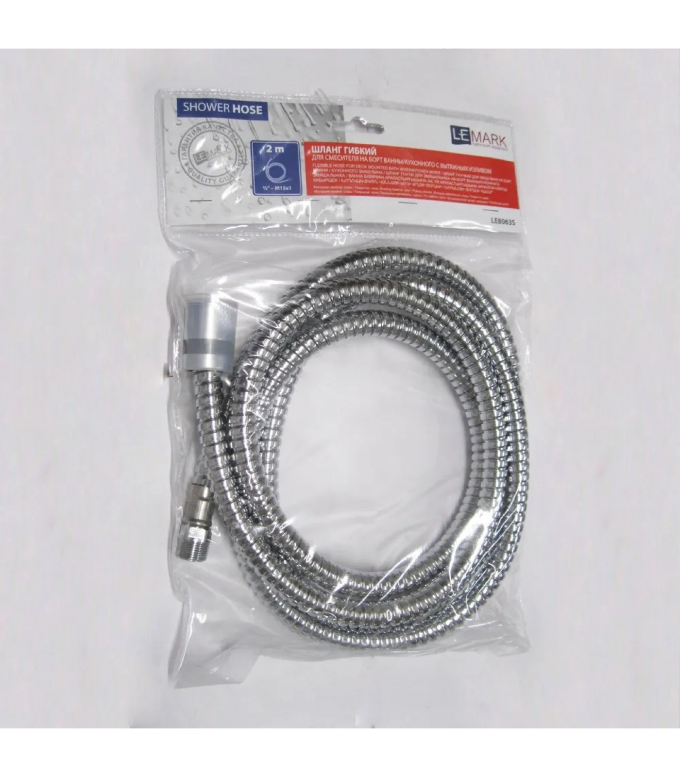 Душевой шланг Lemark LE8063S, 200 см, для лейки смесителя на борт ванны, сталь, хром