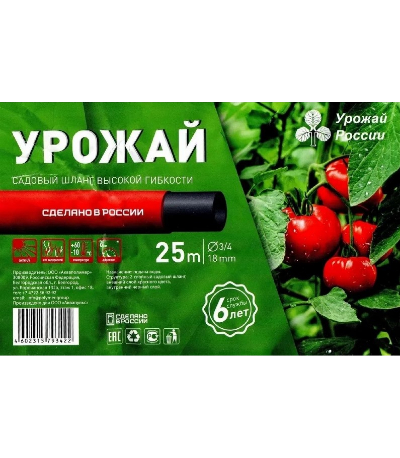 Шланг садовый 3/4" х 25м поливочный AquaPulse Урожай