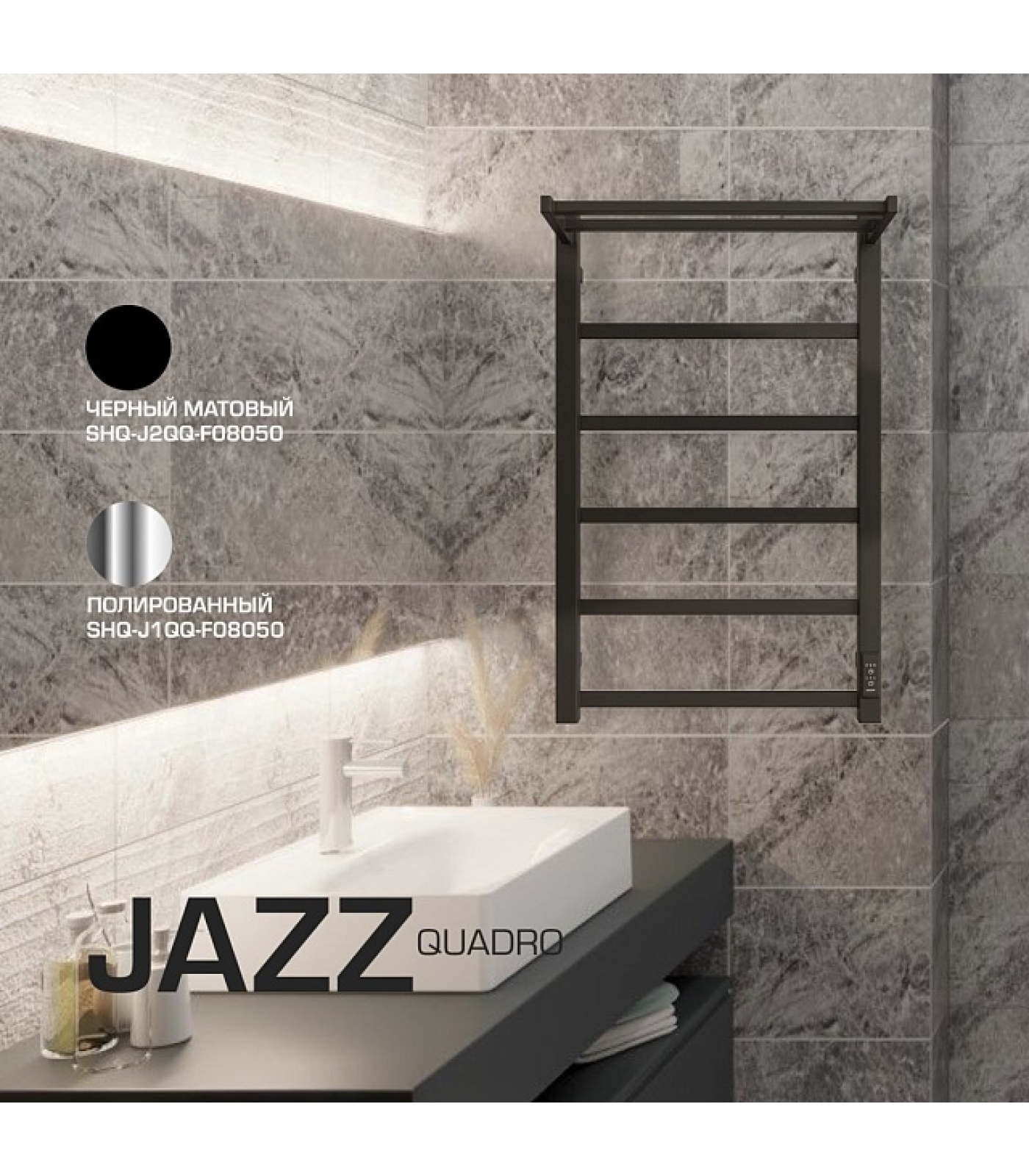 SHQ-J2QQ-F08050 STOUT полотенцесушитель элекрический JAZZ quadro 80*50 Черный матовый с полкой