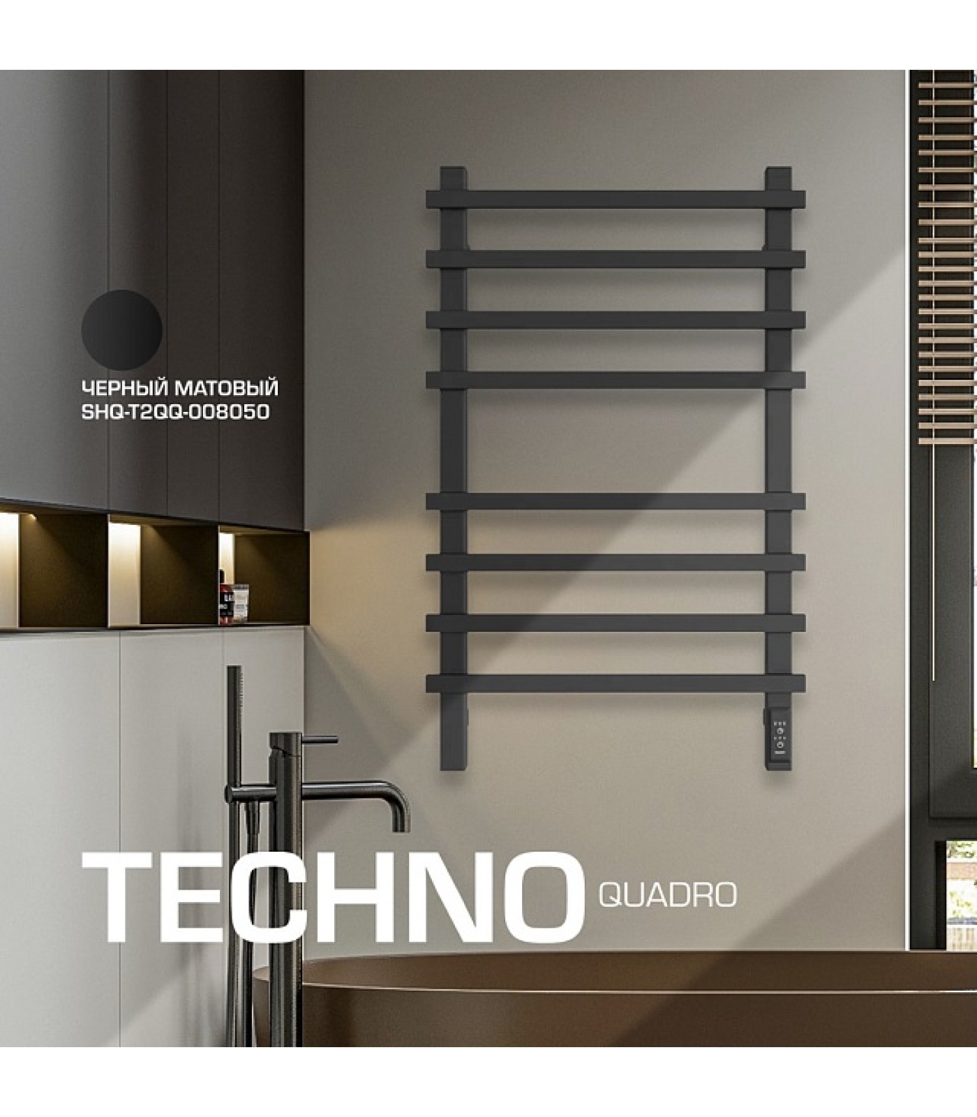 SHQ-T2QQ-008050 STOUT полотенцесушитель элекрический TECHNO quadro 80*50 Черный матовый