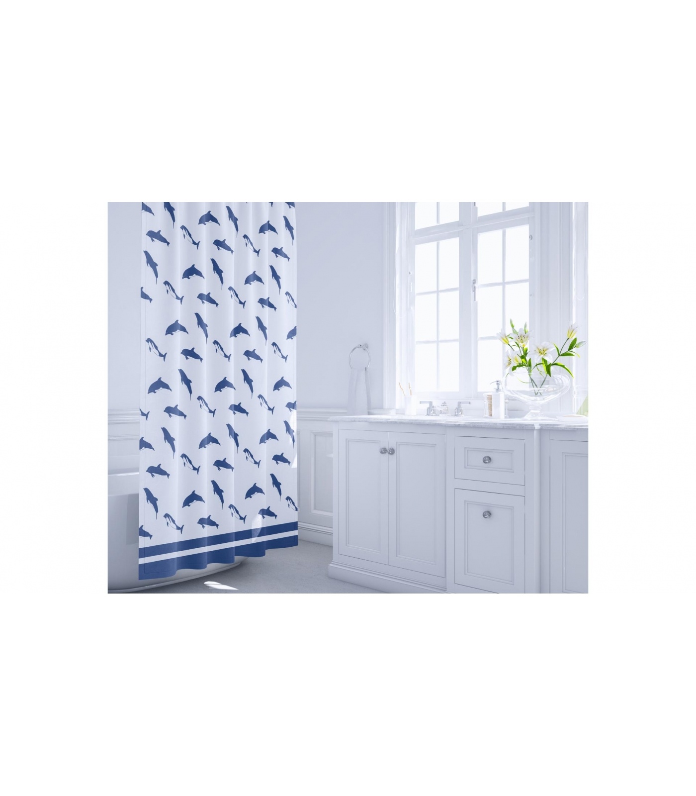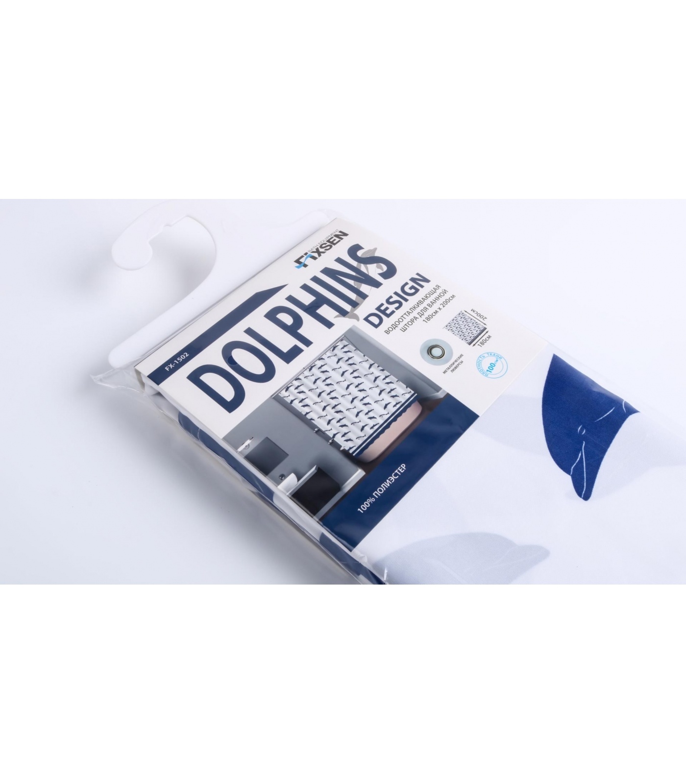 Штора Dolphins FX-1502 изготовлена из практичного износостойкого полиэстера плотностью 100 г/м². Ткань белая с синими элементами модель будет хорошо смотреться в современном интерьере и станет одним из украшений ванной комнаты.