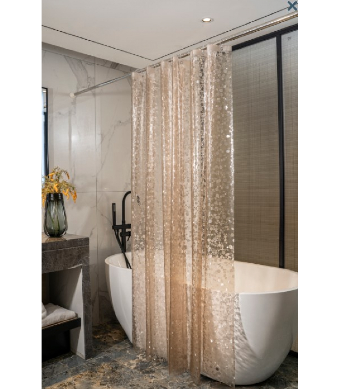 Штора для ванной Santrek Home 180х180 PEVA MS1004 с кольцами, 3D бежевый