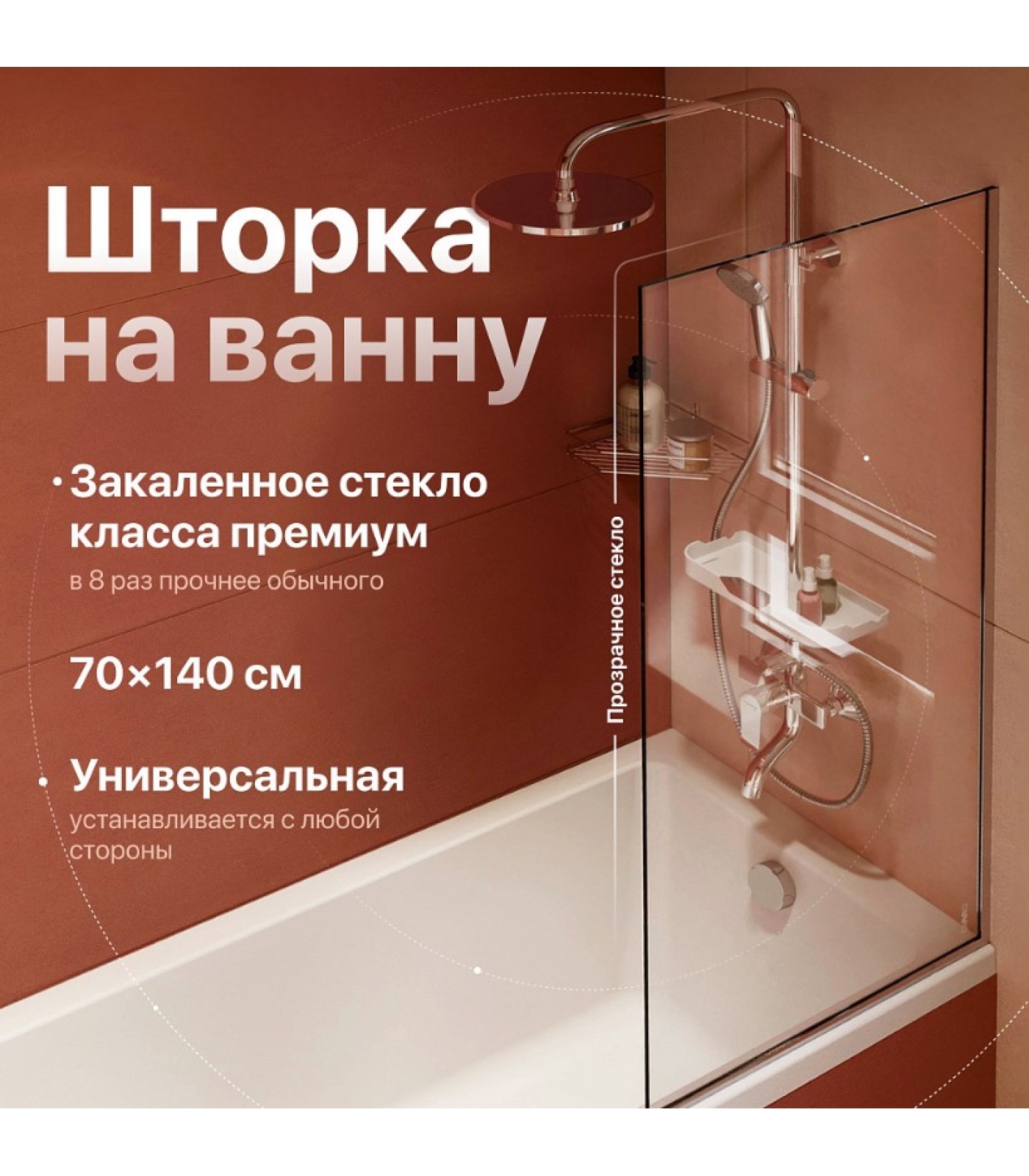Шторка на ванну DIWO Анапа неподвижная, 70х140, профиль хром глянцевый, прозрачное стекло характеристика: