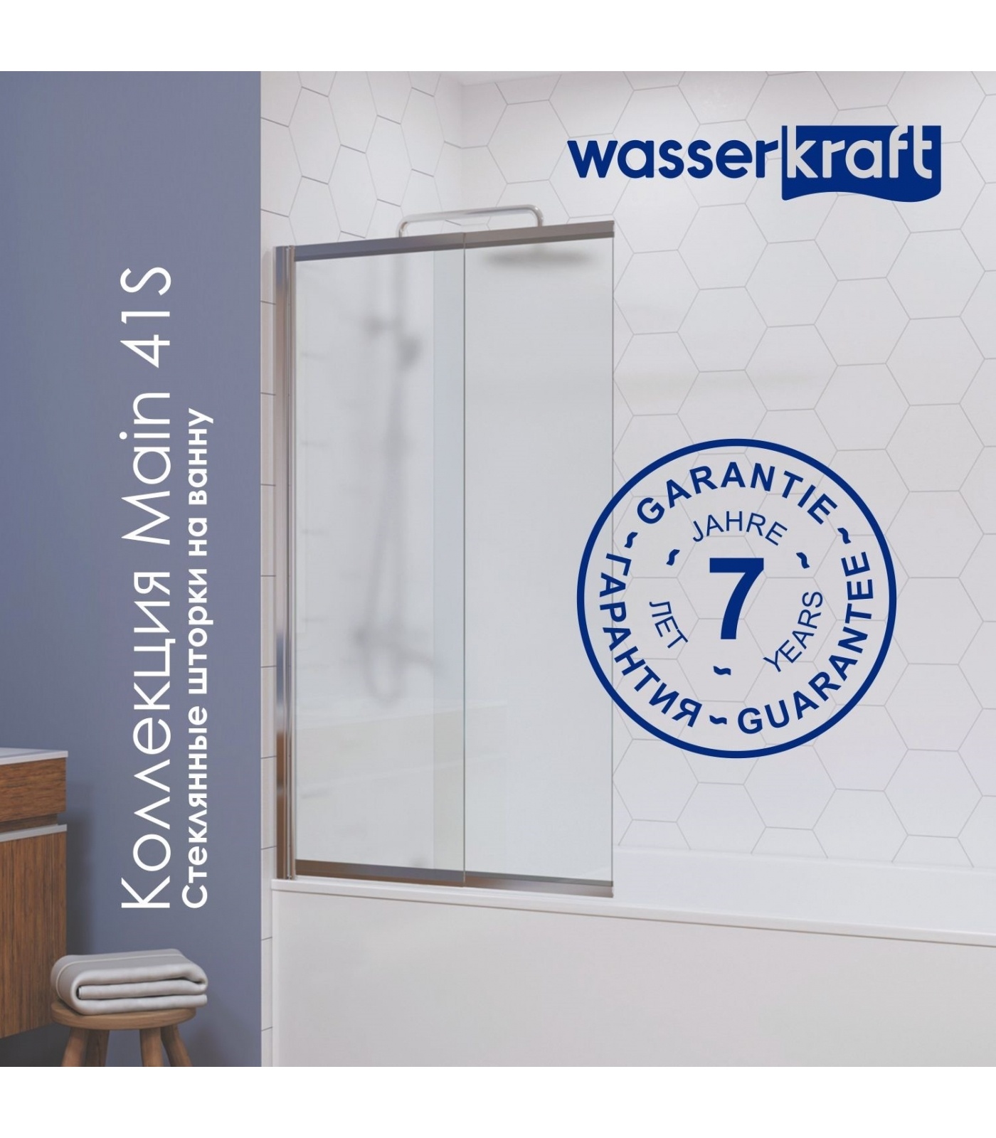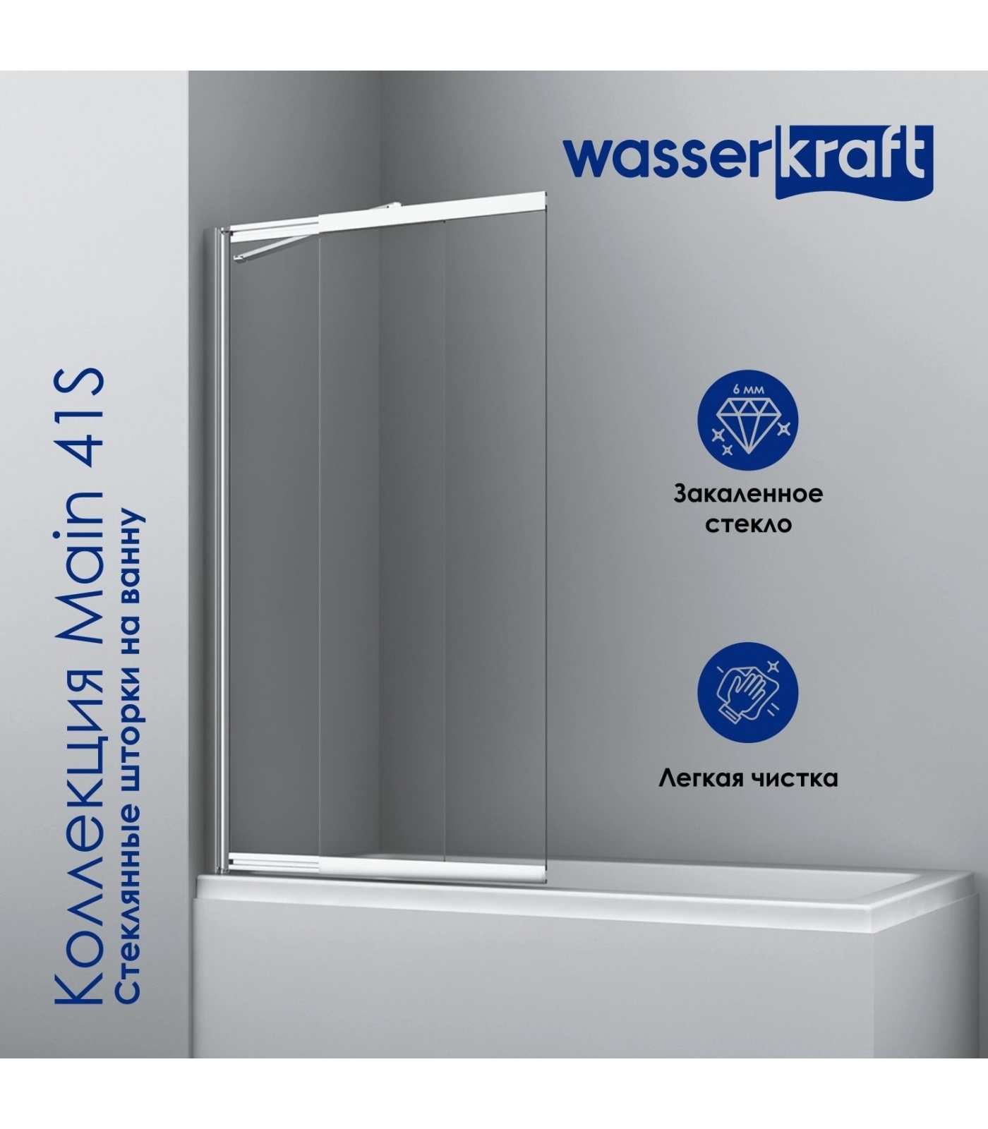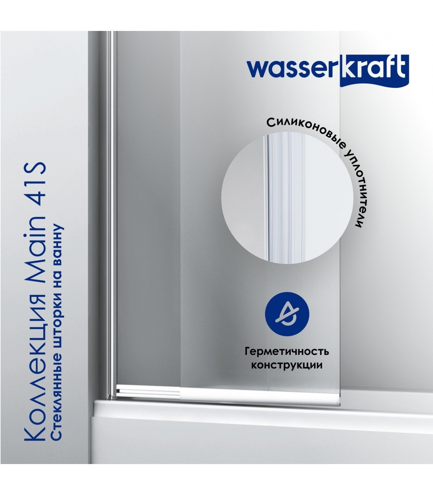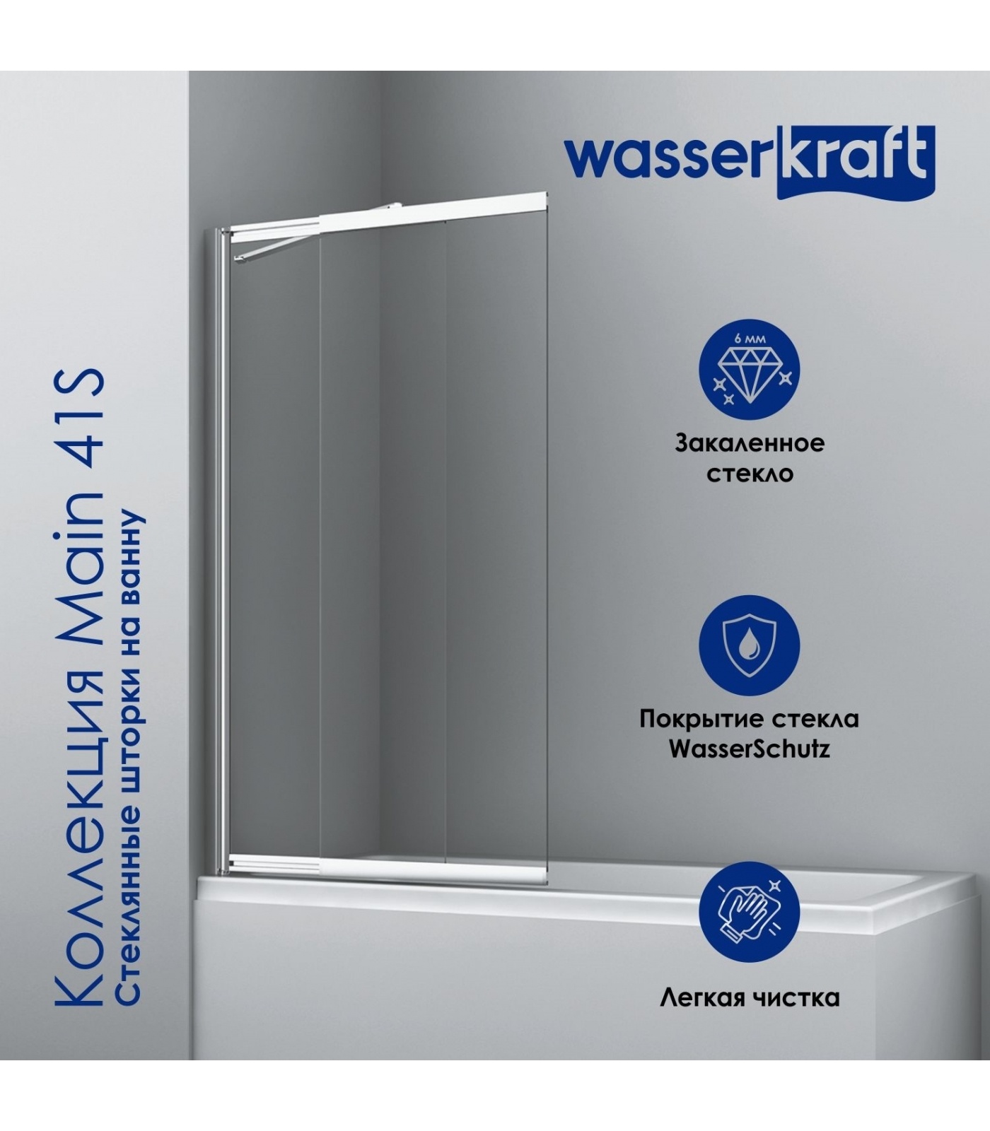 Стеклянная шторка на ванну WasserKraft Main 41S02-100 WasserSchutz