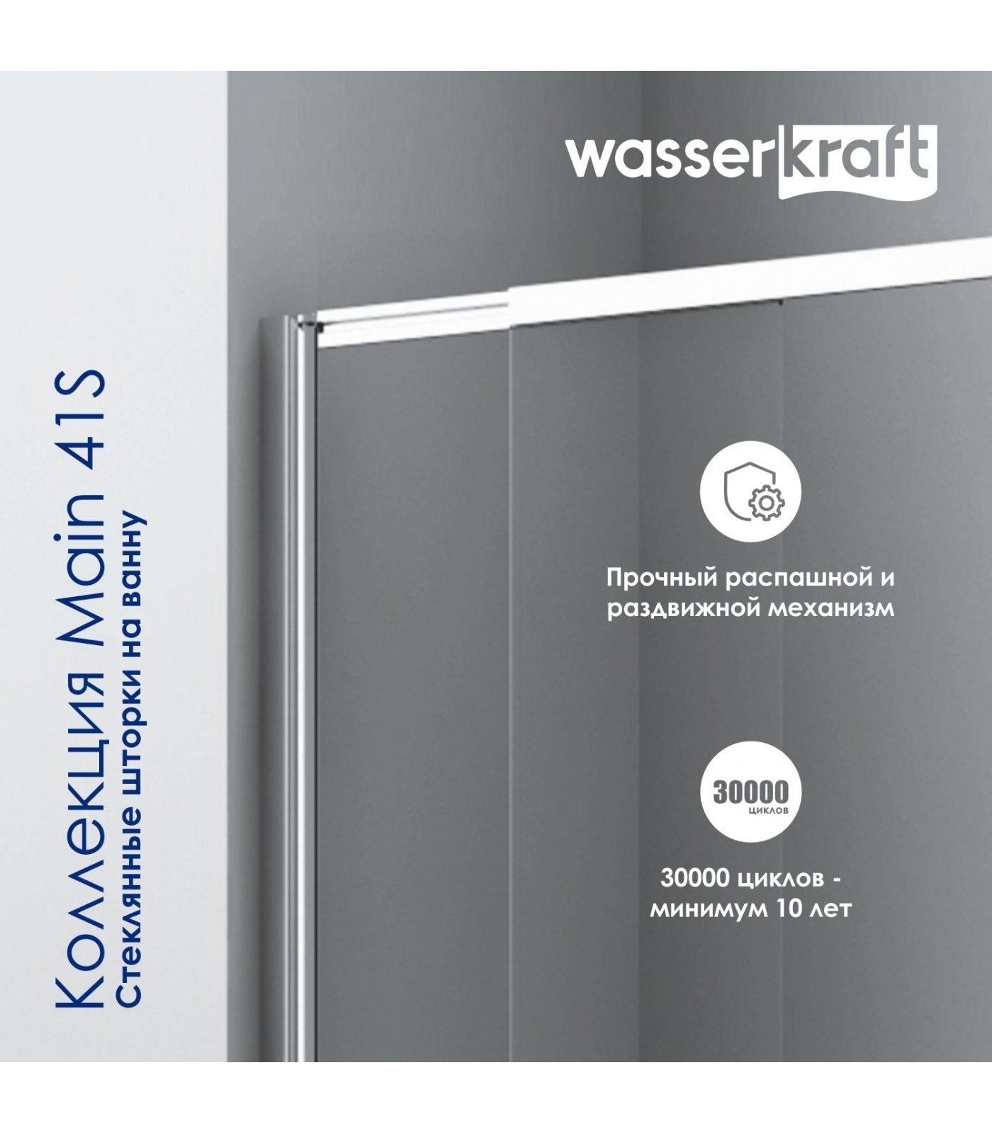 Стеклянные шторки на ванну Main 41S оснащены функциональным раздвижным механизмом.