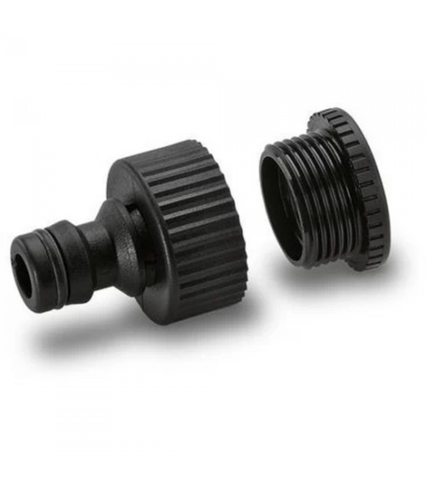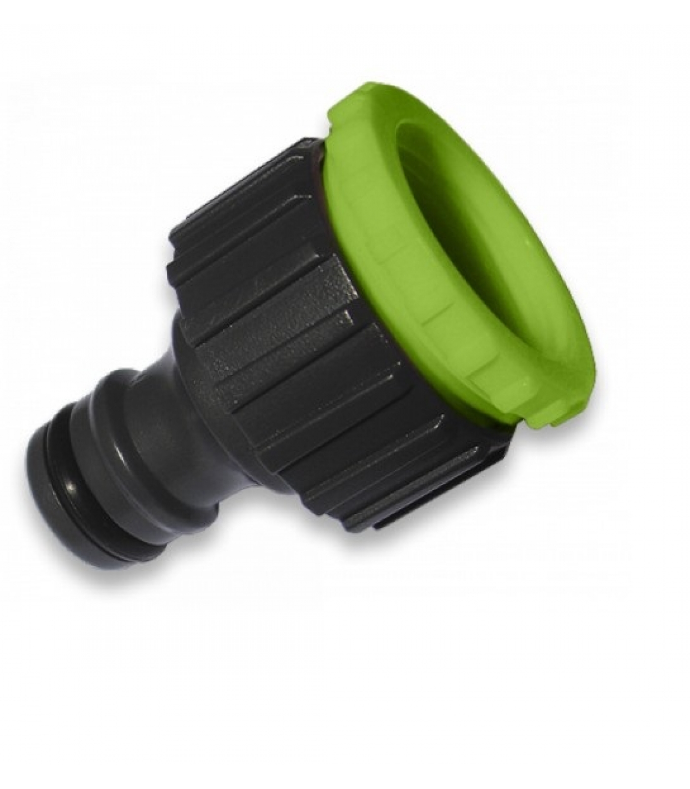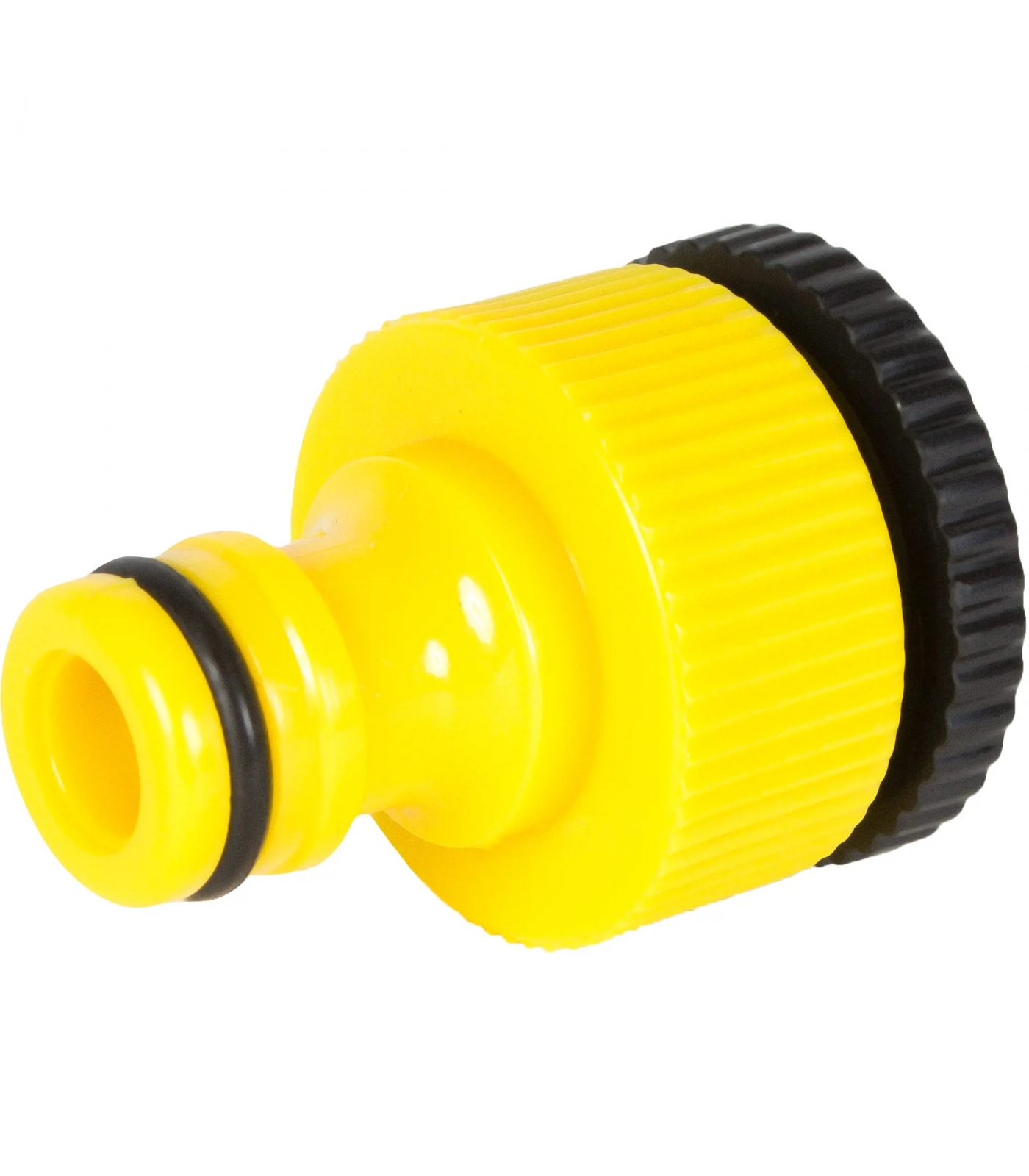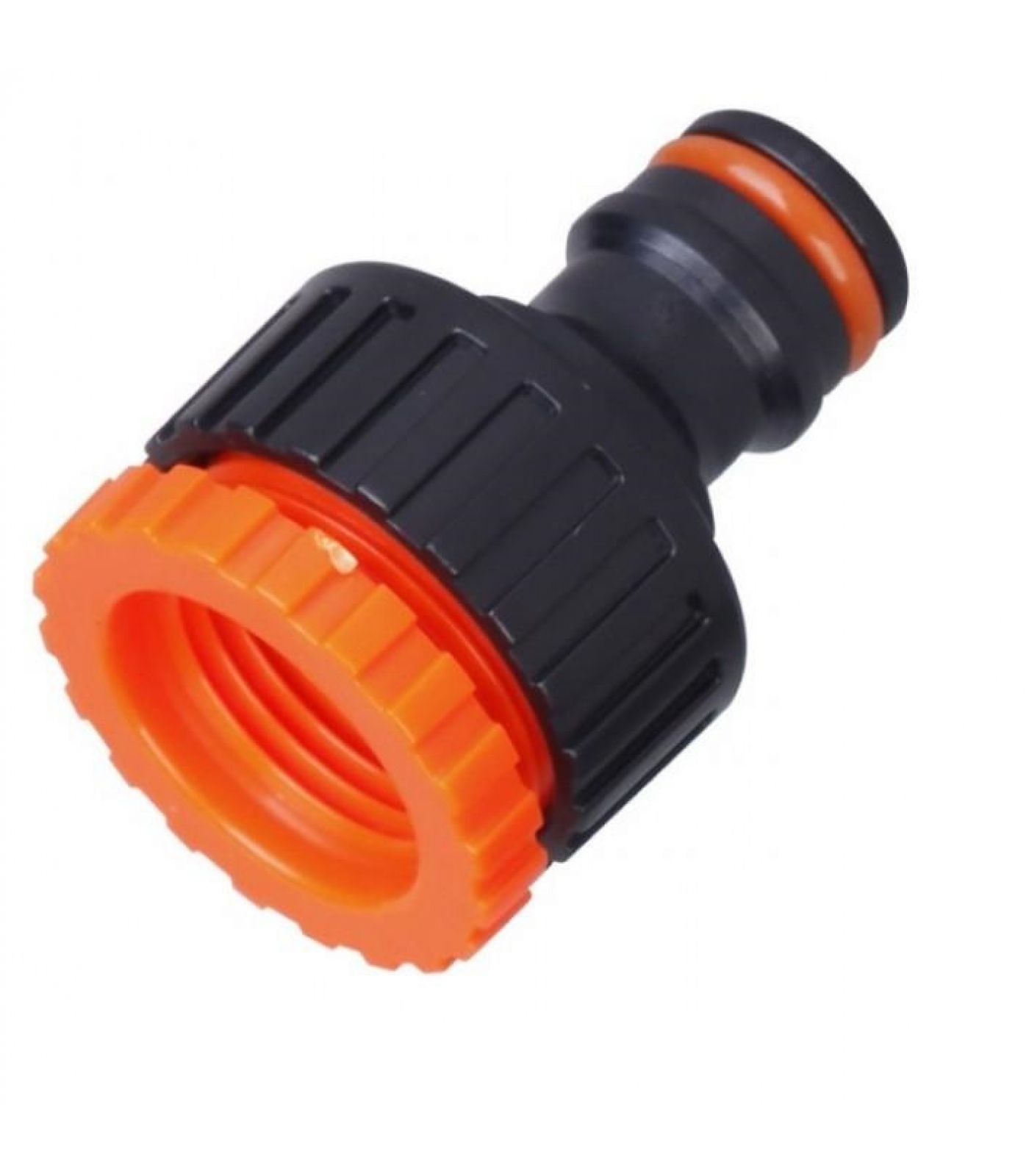 Адаптер оснащен внутренней резьбой для накручивания на внешнею резьбу (например на кран) 3/4", редуктором для крана 1/2" и ниппелем для соединения с коннектором.