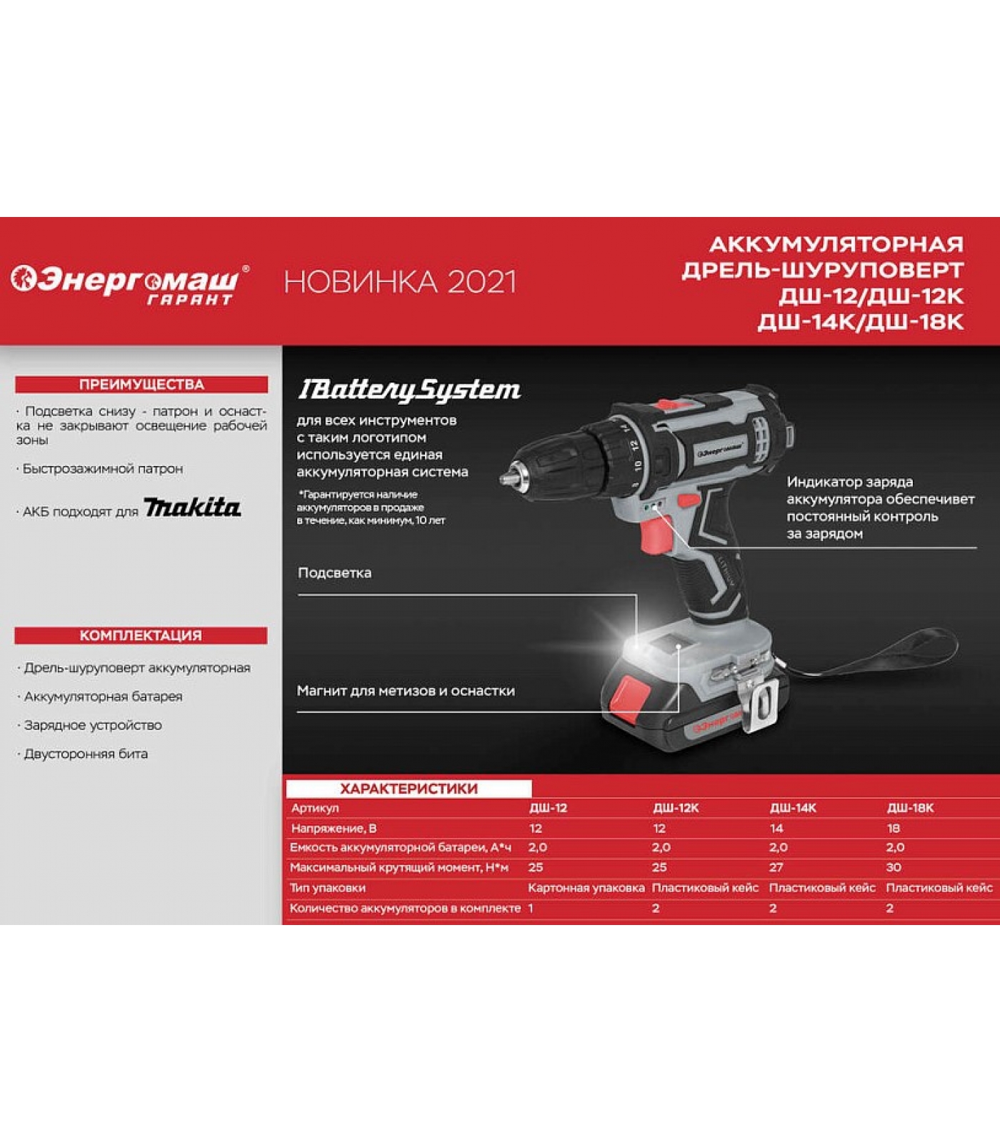 Аккумуляторный шуруповерт Энергомаш ДШ-12К