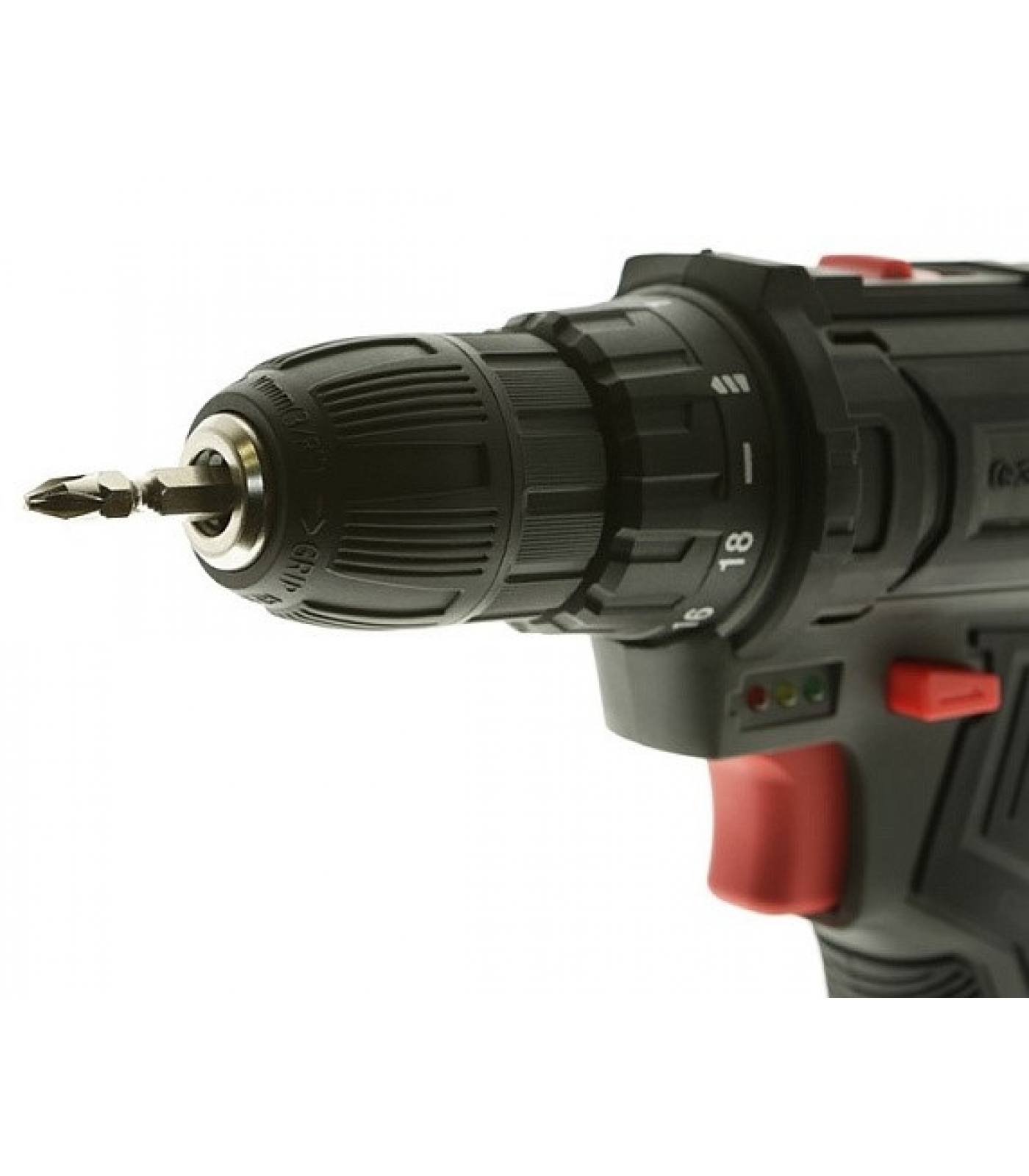 Прочный двухскоростной планетарный редуктор позволяет потребителю эффективно выполнять работы по сверлению в древесине, пластмассе и металле, Оптимальная регулировка силы крутящего момента, в 18 ступень + ступень сверления, позволяет устанавливать любой крепеж без его повреждения и вдавливания в материал.