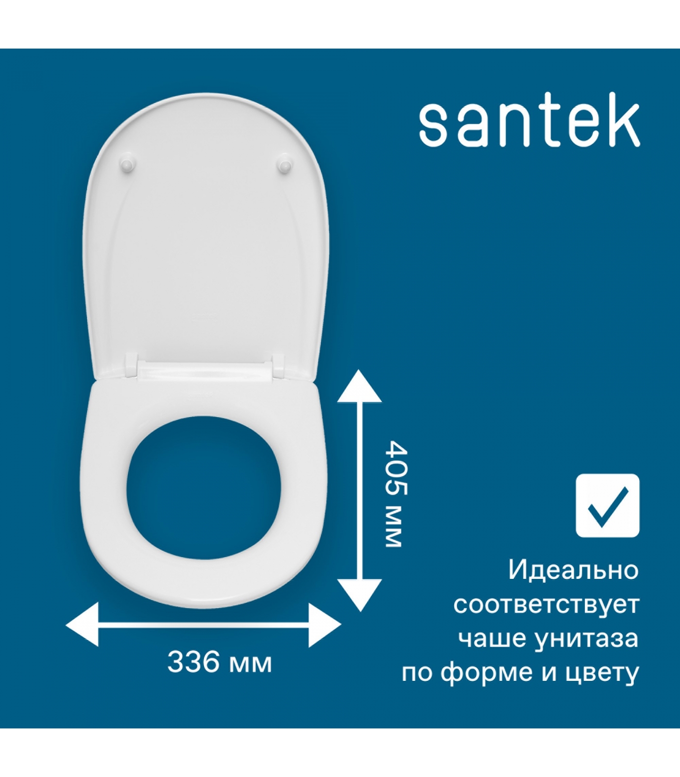 Сиденье для унитаза РИМИНИ от российского производителя SANTEK изготовлено из дюропласта, овальной формы.