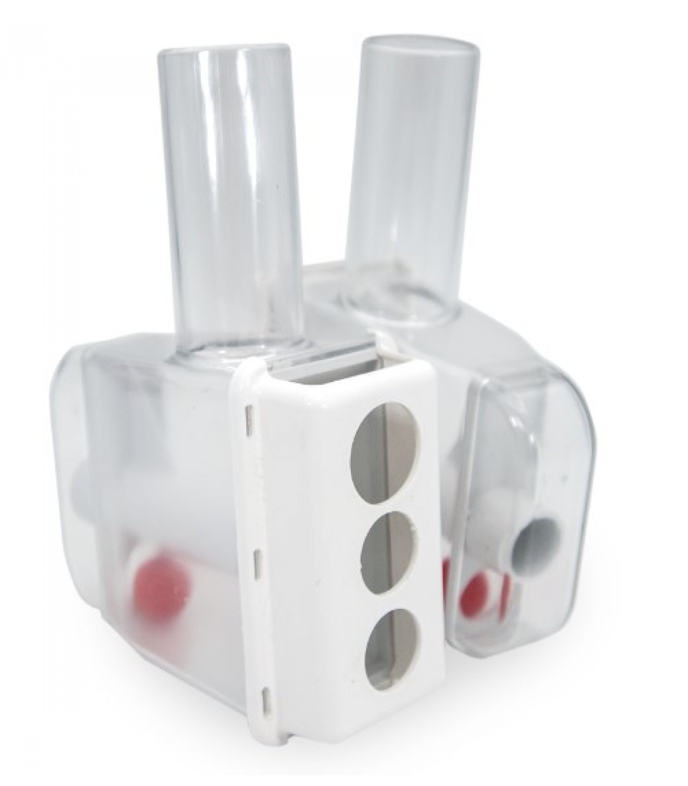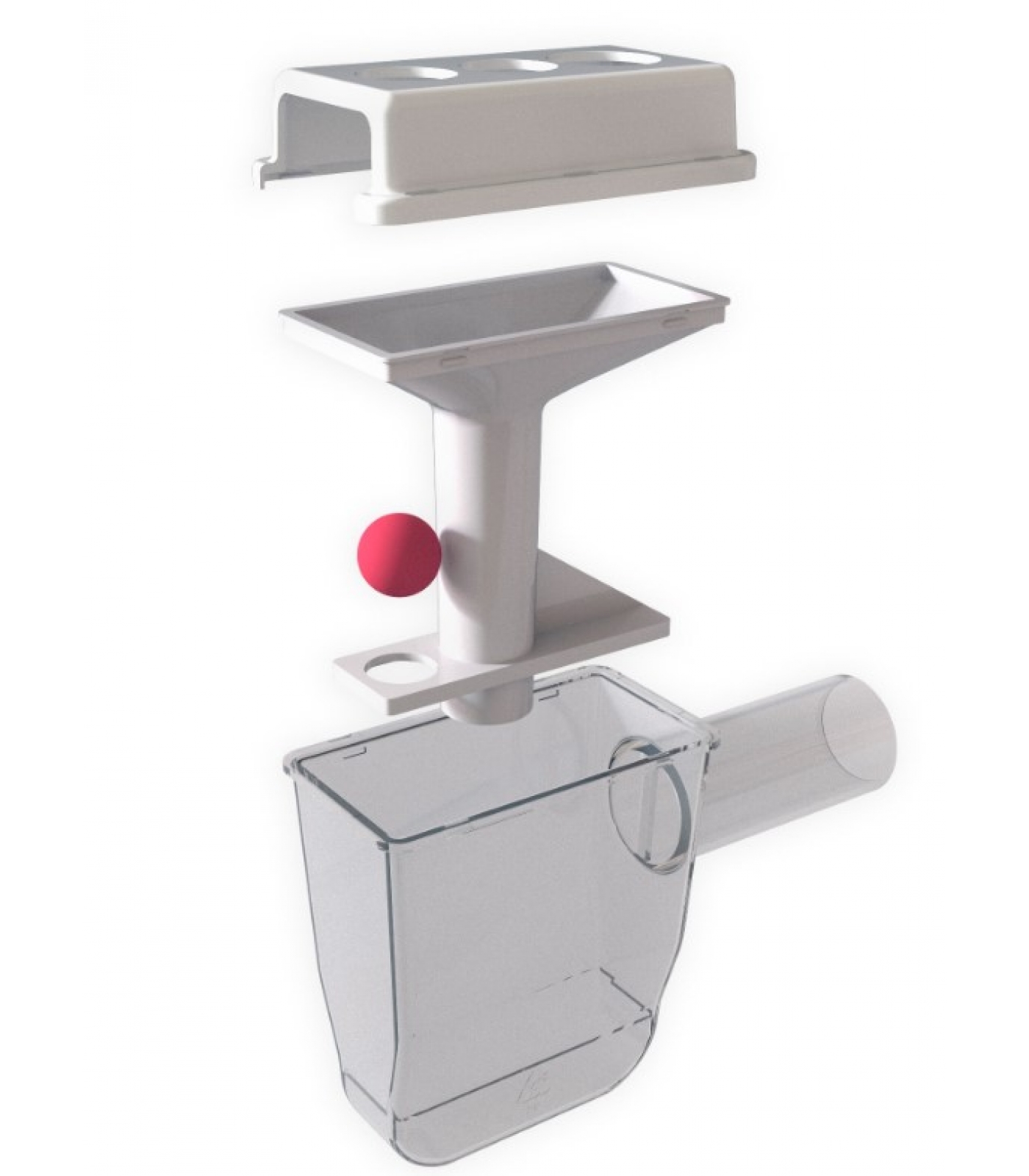 Капельная воронка для сбора конденсата в системах кондиционирования и отвода в канализацию, с запирающим механическим устройством (шариком) для предотвращения попадания запахов из канализации в систему кондиционирования.