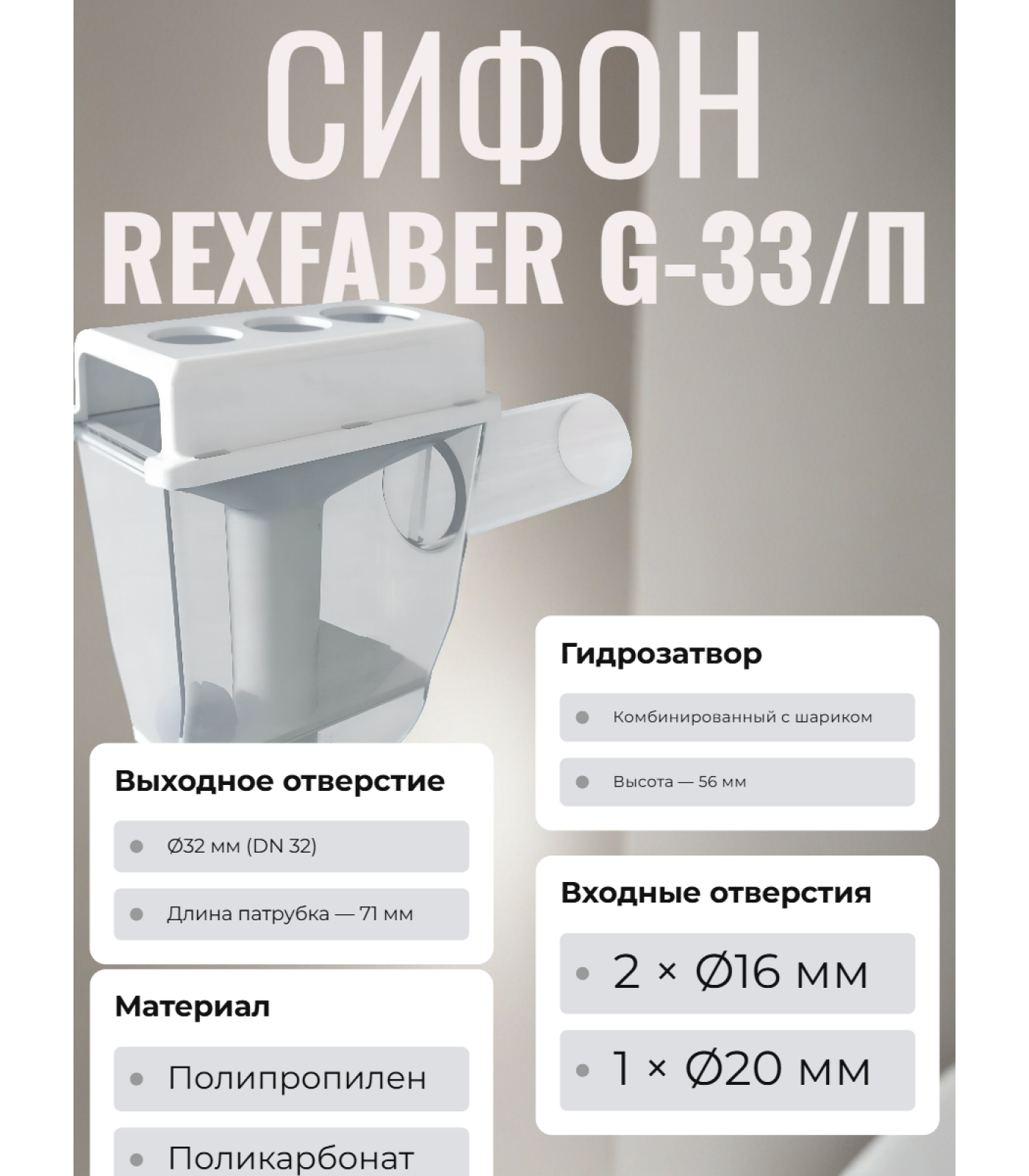 Сифон REXFABER G-33П для отвода конденсата в канализацию в системах кондиционирования.