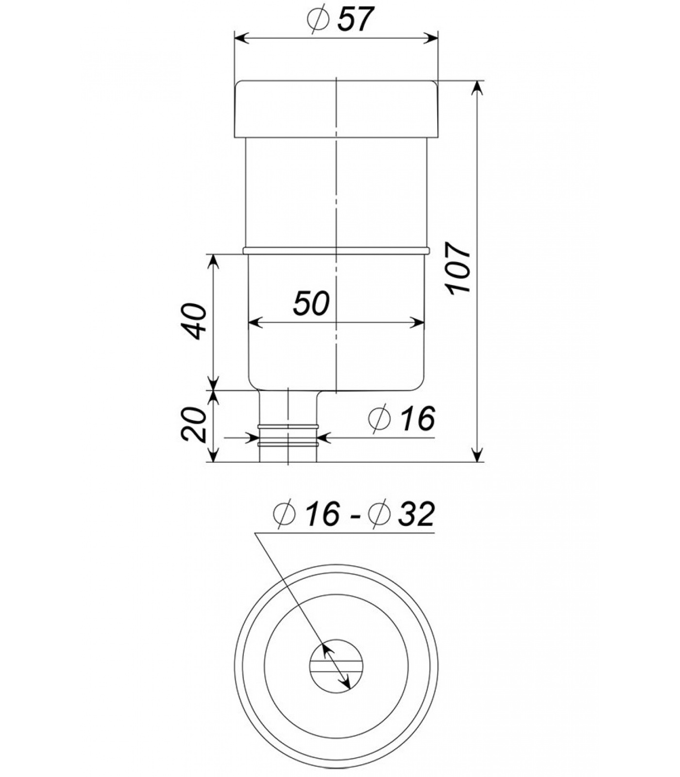 Монтаж сифона осуществляется либо непосредственно в раструб канализационной трубы DN50, либо с помощью трубки подходящего диаметра, к выходному патрубку Ø16 мм.