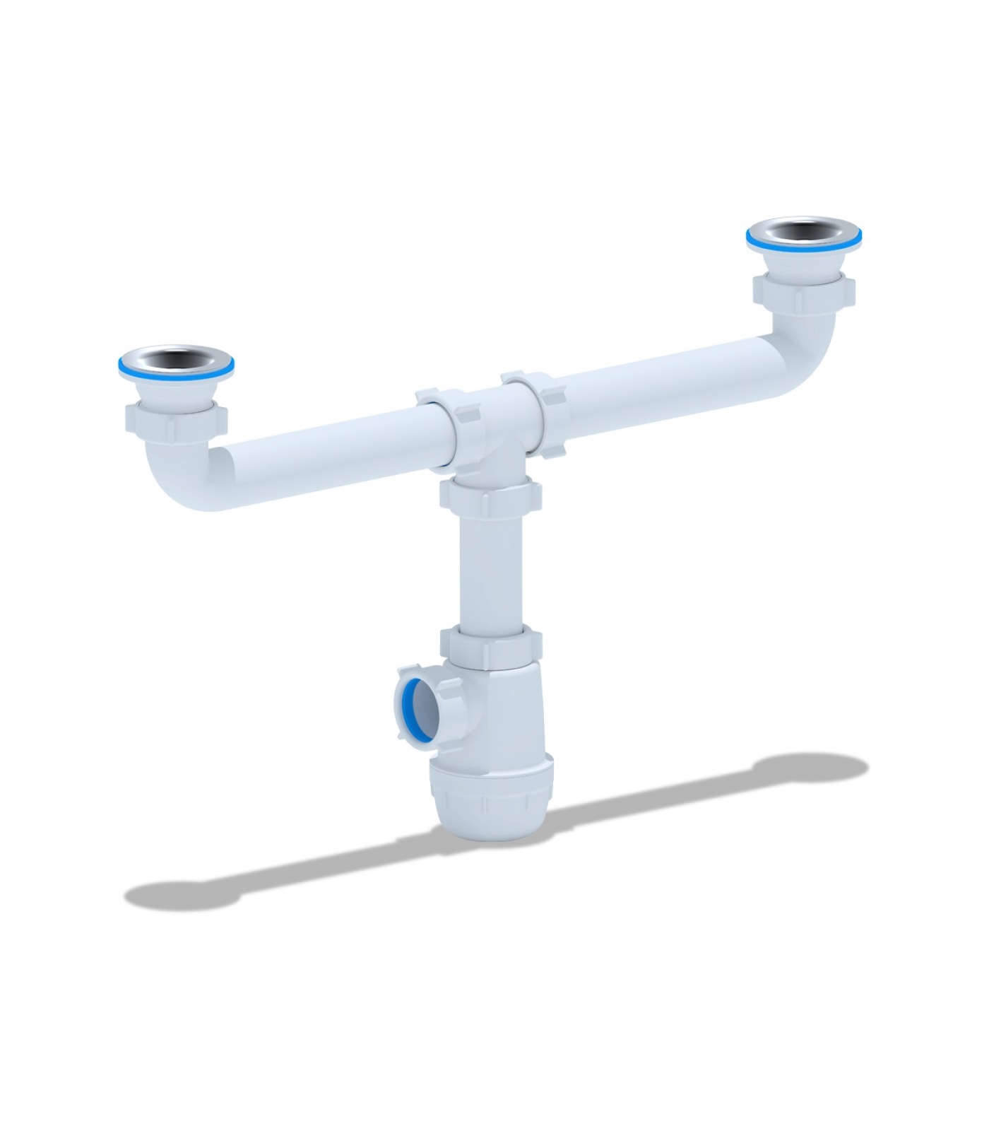 • Сифон сливной АНИ пласт A3000 двойной для кухонной мойки с двумя чашами, с диаметрами сливных отверстий 50-60 мм