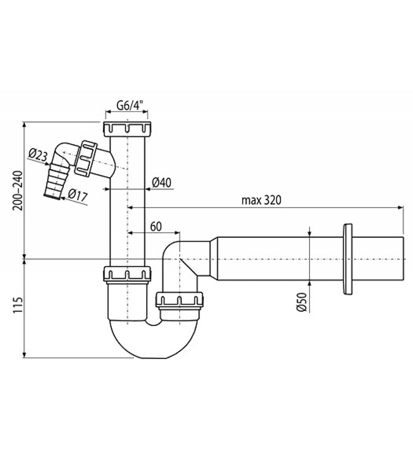 Alcaplast Сифон трубчатый с накидной гайкой 6/4" с подводкой