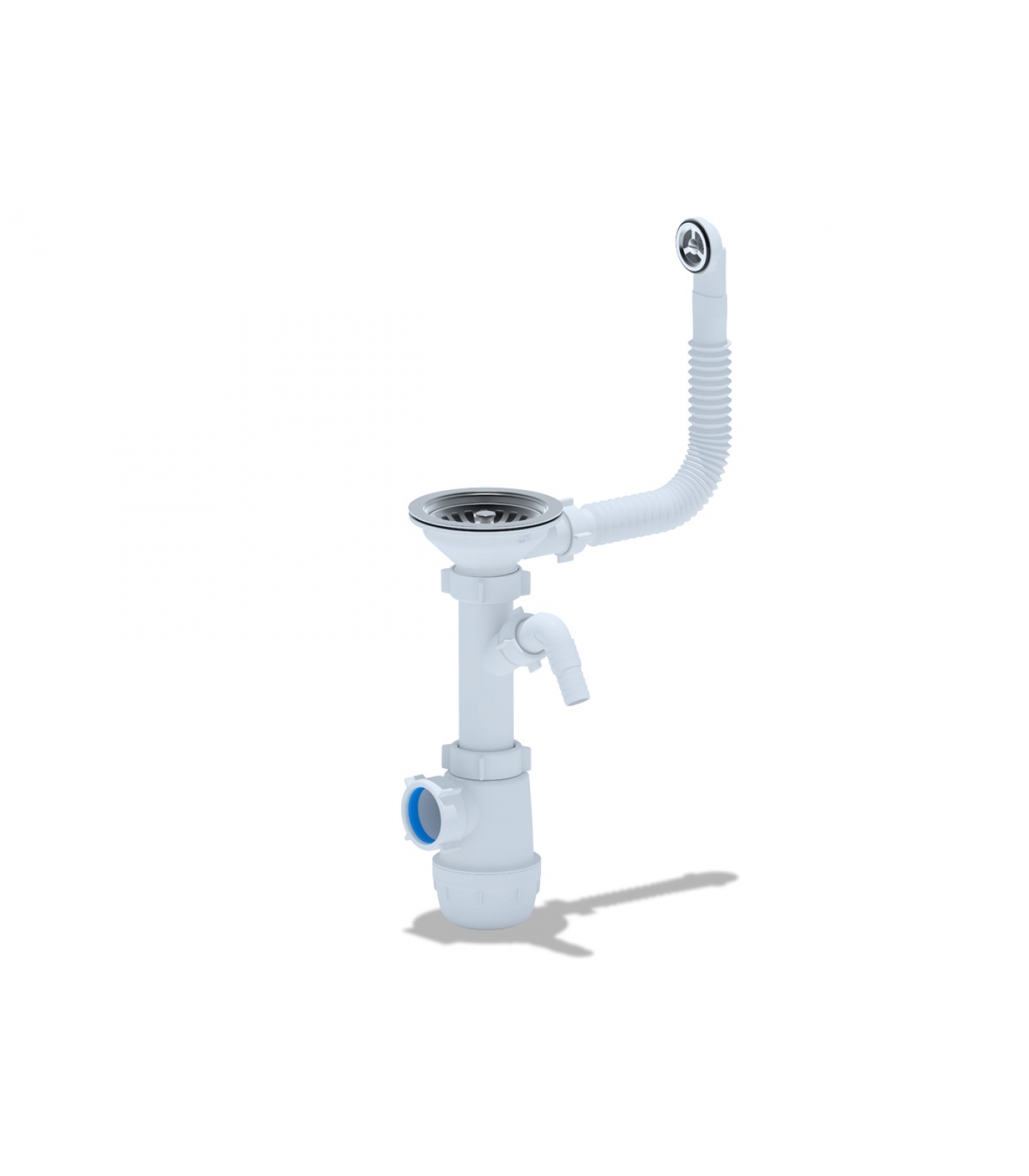 Сифон A1042S с разборным выпуском и нержавеющей решеткой, с отводом для подключения бытовой техники, с гибким круглым переливом для моек из композитных материалов. Выход для подключения к канализации 40мм. Длина винта 40мм.