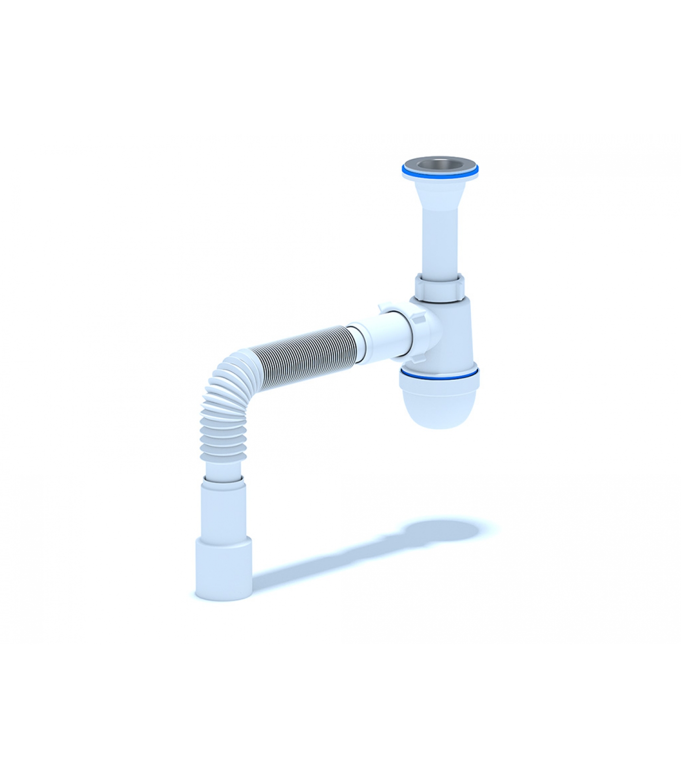 Комплектация: сифон с литым выпуском, гибкая труба для подключения к канализации 40х40/50мм.