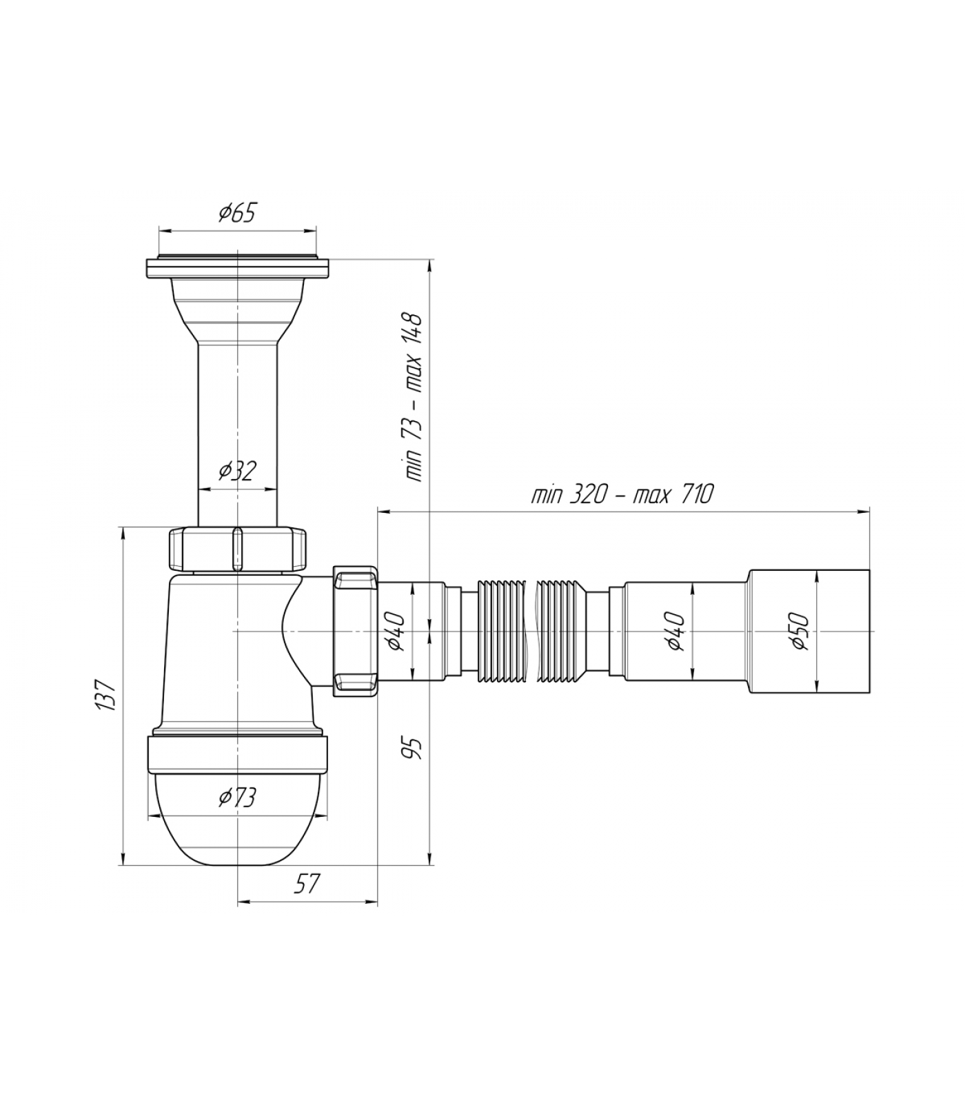 • Тип сифона: бутылочный