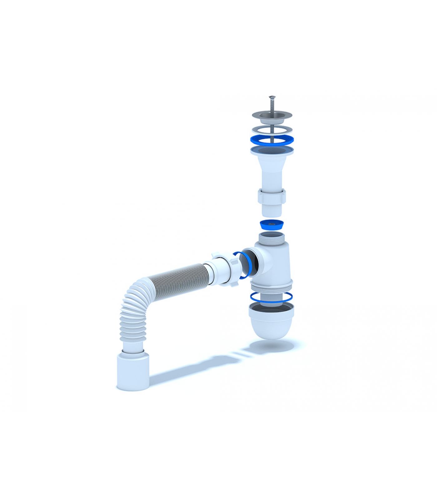 Но есть стандартная комплектация сифонов, существующая уже на протяжении длительного времени. В стандартный комплект входят элементы: сетка или защитная решетка— обычно этот элемент имеет несколько, 5-6 отверстий, которые имеют размер диаметра 1 см. Эта сетка или решетка устанавливается в умывальник, этот элемент вы можете видеть в раковине утром во время утреннего или вечернего умывания и очищения зубов. Основа элемента может быть выполнена из металла или пластмассы; прокладки из резинового материала — толщина этих изделий обеспечивает предотвращение просачивания воды через них из умывальника вниз на пол. Для дорогих обычно используются прокладки белого цвета, а для дешевых черные