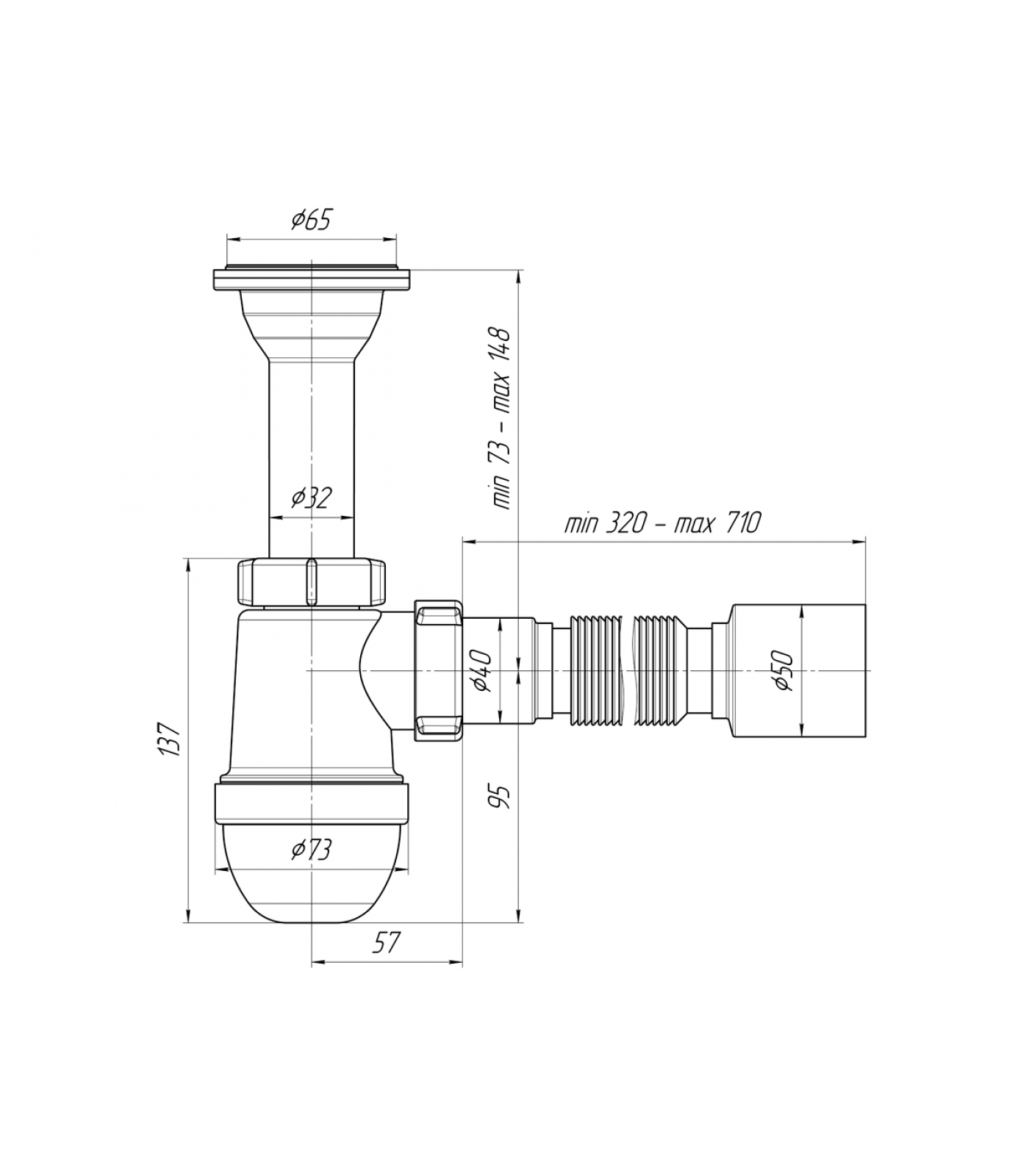 • Сифон сливной АНИ пласт C2010 для умывальников и раковин с диаметром слива 40-52 мм