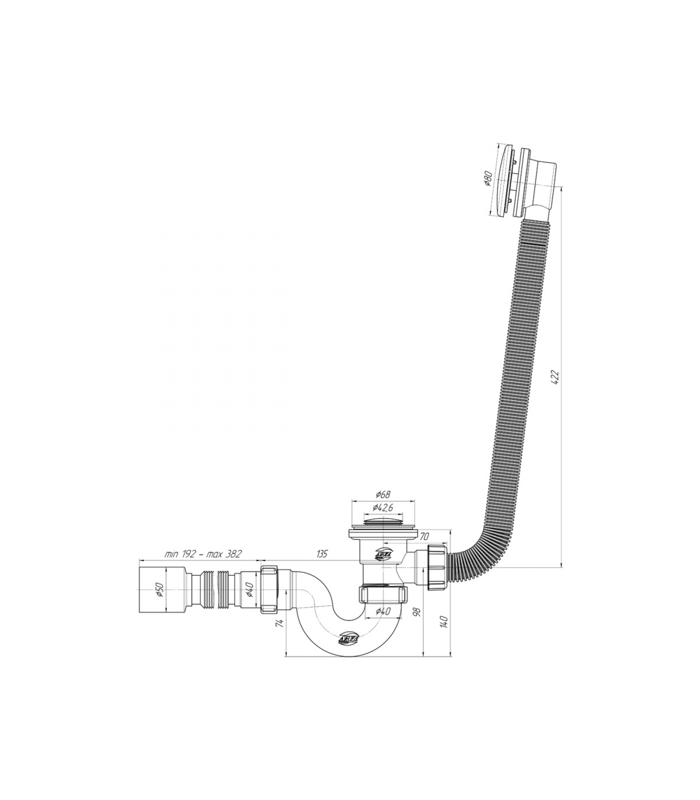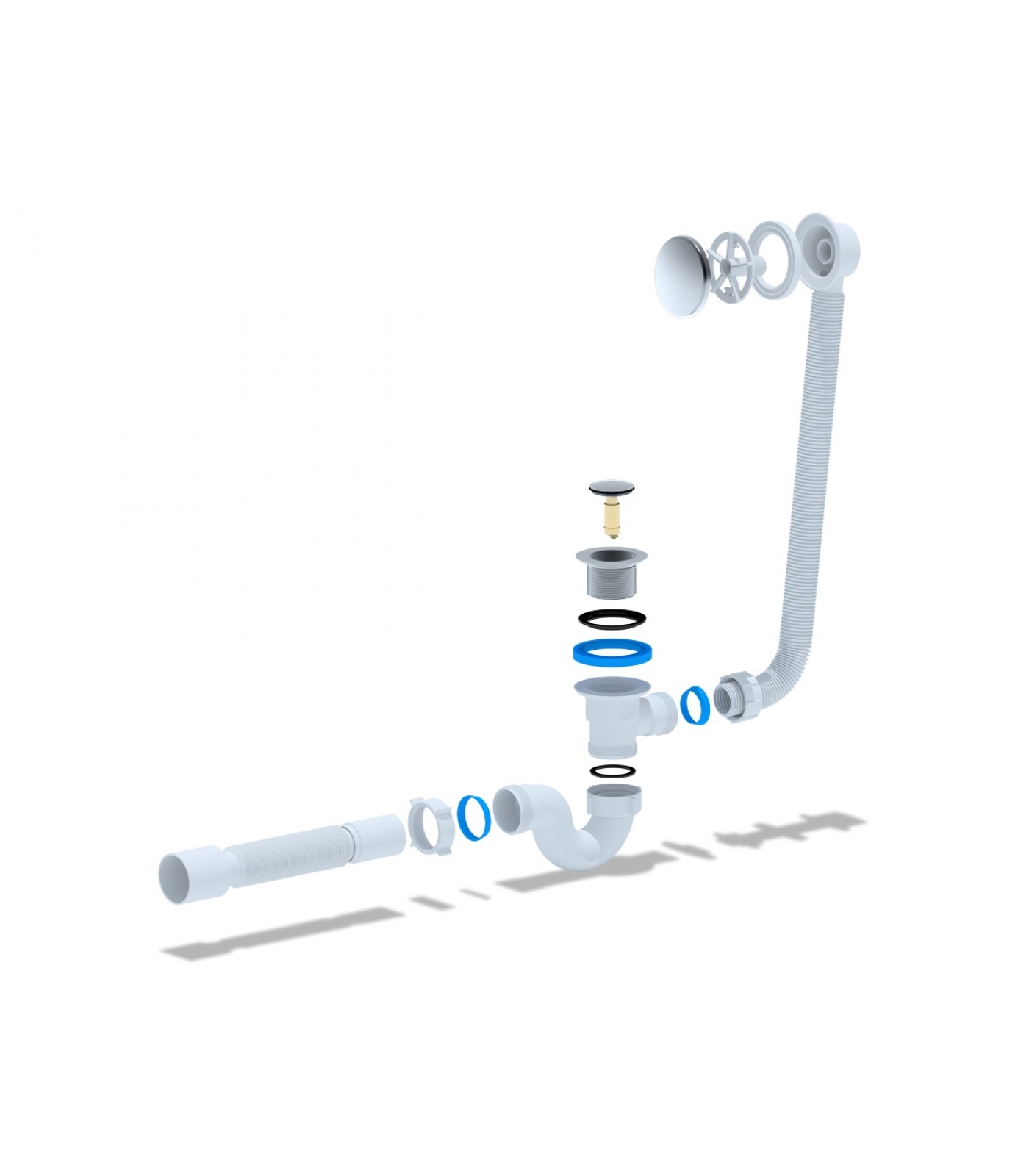 Сифон комплектуется металлическим выпуском "клик-клак". Механизм "клик-клак" приводится в действие путем нажатия на выпуск, при этом открывается или блокируется выпуск воды в канализацию. Самый простой сифон для ванны, имеющий всего один параметр регулировки. Изменение направления слива воды возможно путем разворота в месте присоединения к выпуску. Благодаря своей форме прямоточный сифон имеет высокую скорость слива сточной воды, а так же самый простой способ прочистки без демонтажа. Сифон прост в установке и выполняет свою главную функцию - формирование гидрозатвора для отсечения неприятных запахов из канализации.