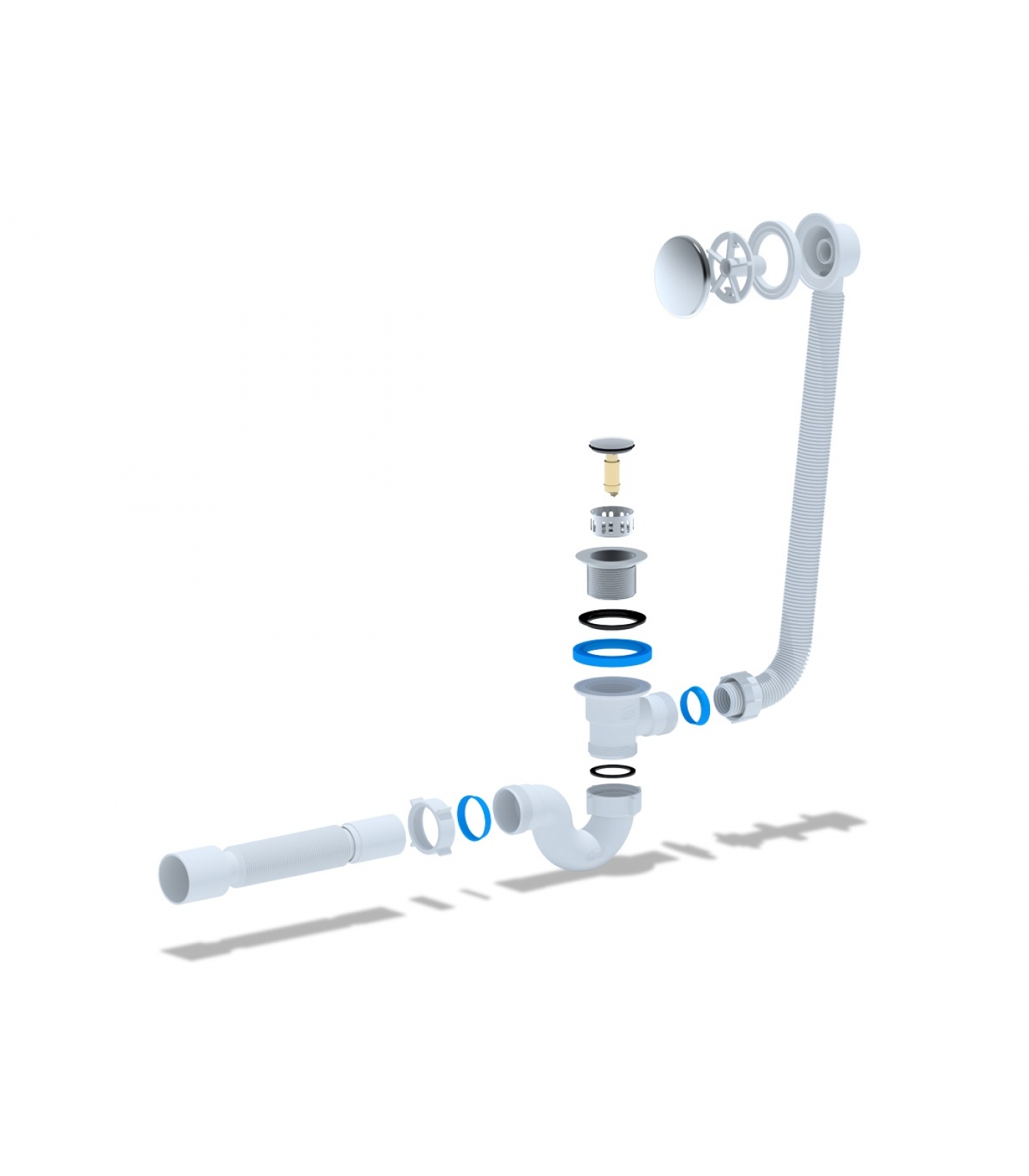 Сифон комплектуется металлическим выпуском "клик-клак" с сеткой. Механизм "клик-клак" приводится в действие путем нажатия на выпуск, при этом открывается или блокируется выпуск воды в канализацию. Самый простой сифон для ванны, имеющий всего один параметр регулировки. Изменение направления слива воды возможно только путем разворота в месте присоединения к выпуску. Благодаря своей форме прямоточный сифон имеет высокую скорость слива сточной воды, а так же самый простой способ прочистки без демонтажа. Сифон выполняет свою главную функцию - формирование гидрозатвора для отсечения неприятных запахов из канализации и прост в установке.