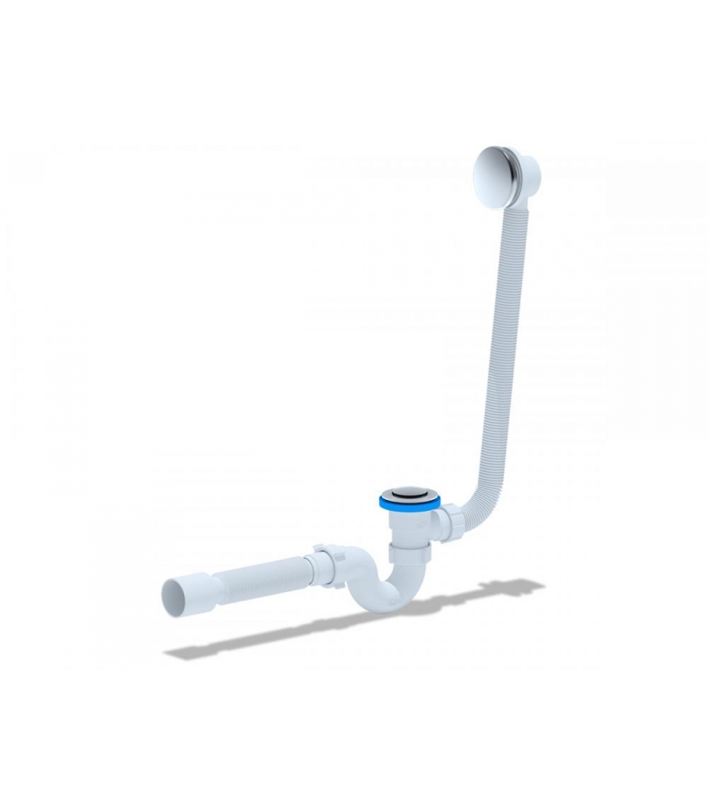 • Сифон сливной АНИ пласт EC155S для ванны с выпуском "клик-клак" с сеткой и переливом.
