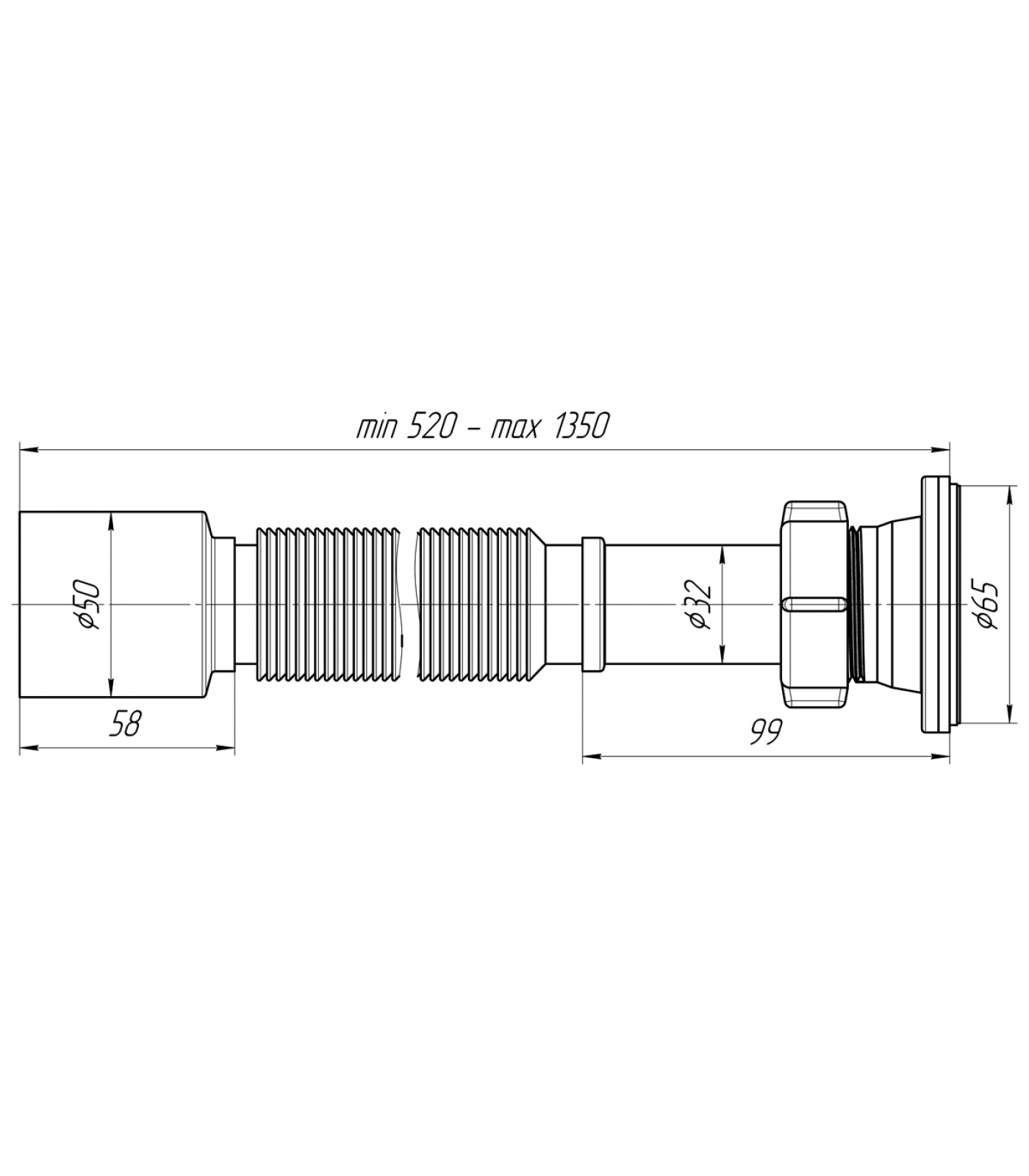 Сифон гофрированный для умывальника длина 520-1350мм.
