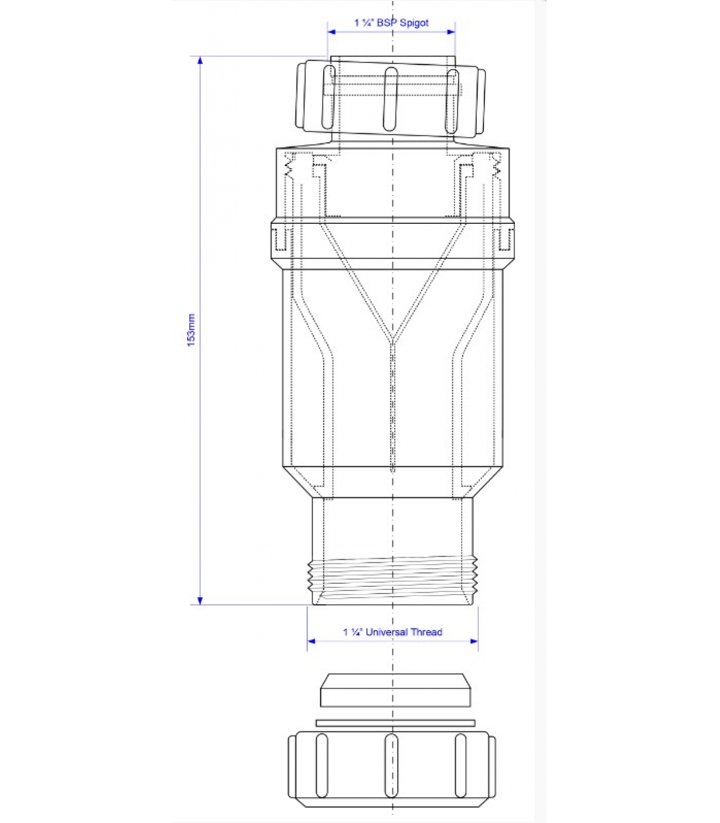 Сифон McAlpine самозакрывающийся сливной сухой клапан, вход 1 1/4", выход 32 мм компрессионный