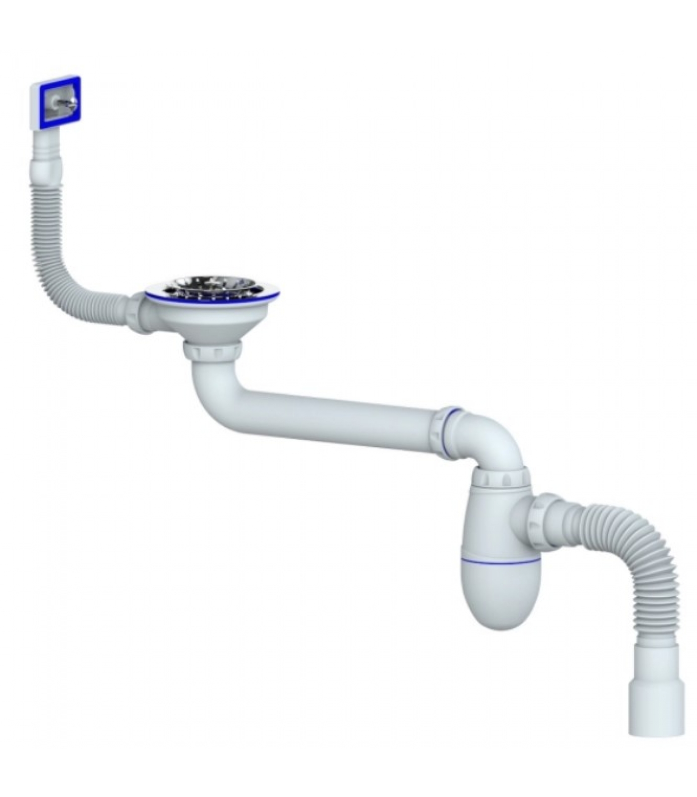 Сифон со смещением позволяет установить умывальник/мойку на любой высоте, а также освобождает дополнительное пространство под ними, поскольку гидрозатвор сифона в установленном виде будет располагаться дальше от центра умывальника или мойки.