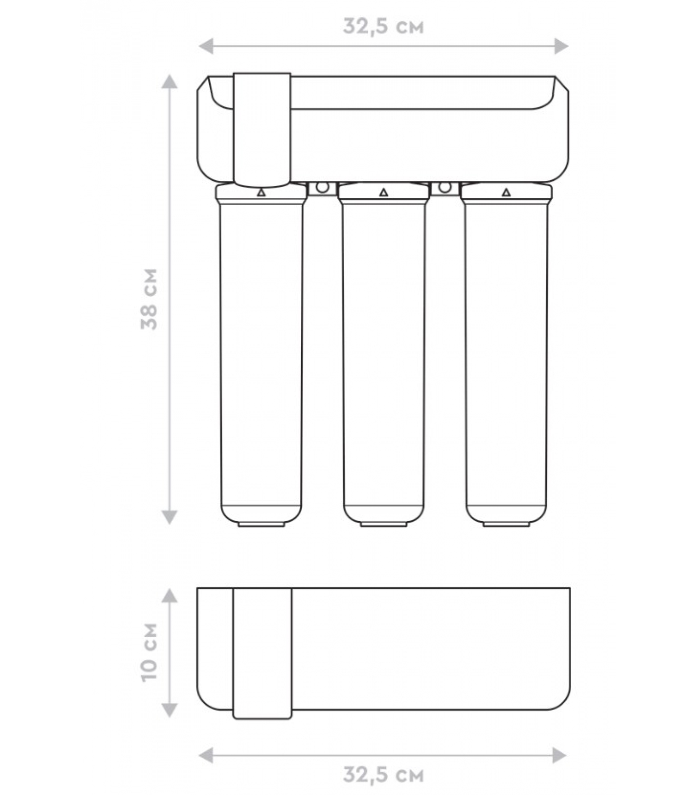 Компактная трехступенчатая система обратного осмоса очищает воду до 100%, удаляя все примеси, включая соли жесткости — причину накипи, бактерии и вирусы. Подходит для доочистки как после городского водопровода, так и после коттеджной системы. Производительность фильтра — не менее 1 л/мин, ресурс — 5 000 литров. Рабочее давление — от 3,5 до 7 атм.