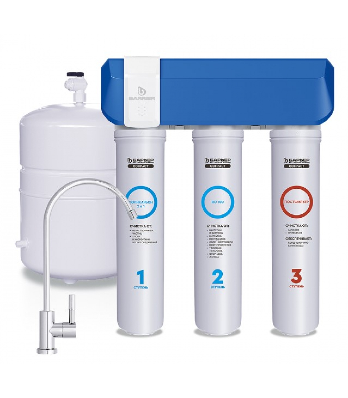Система фильтрации обратного осмоса Барьер Compact Osmo 100, 3 ступени с баком и краном