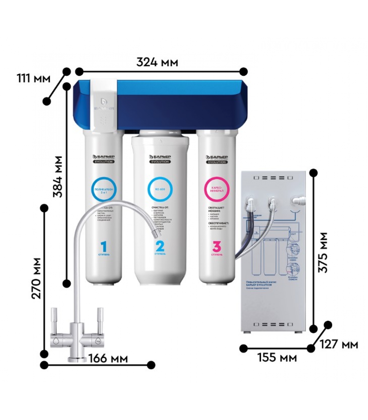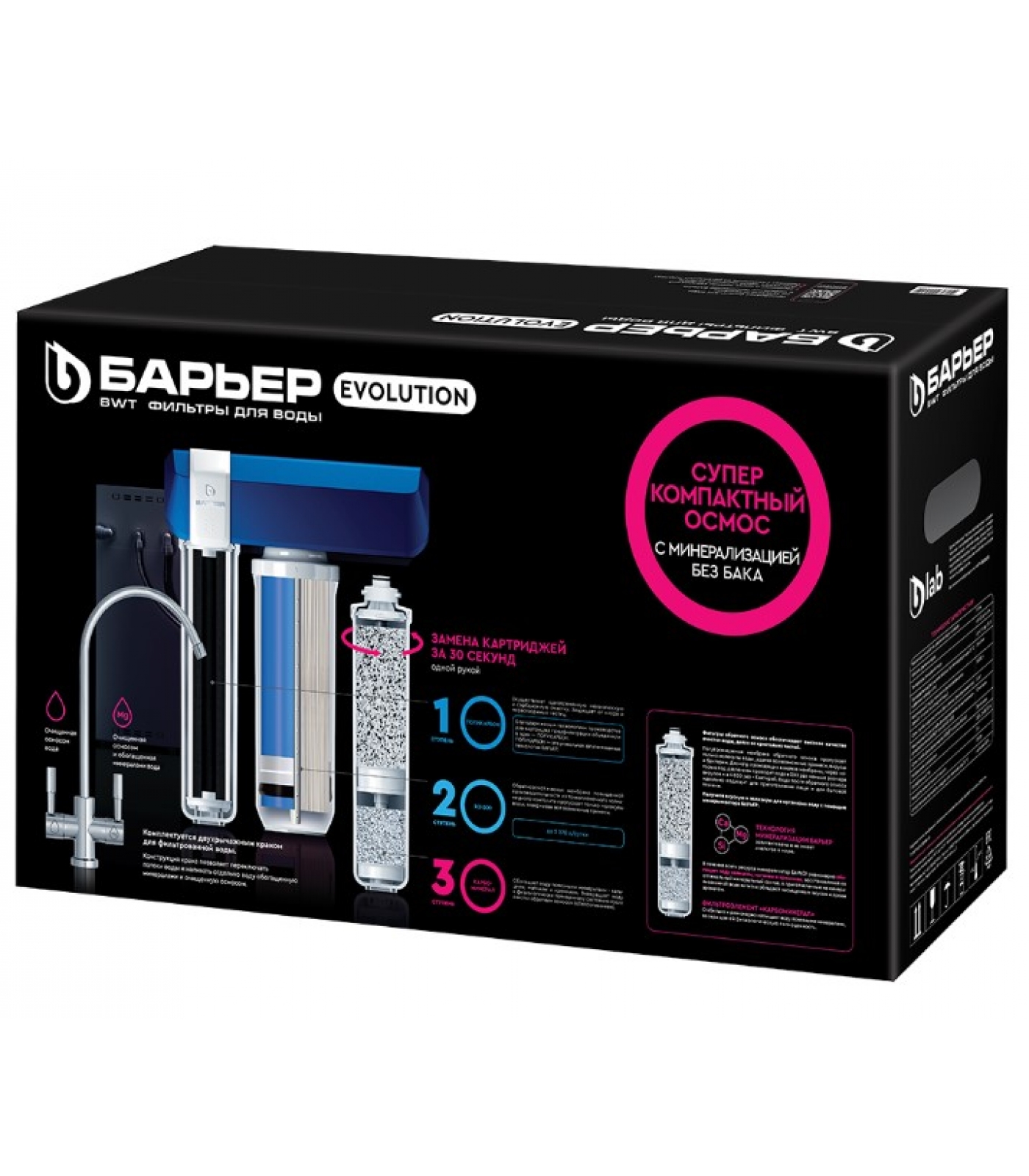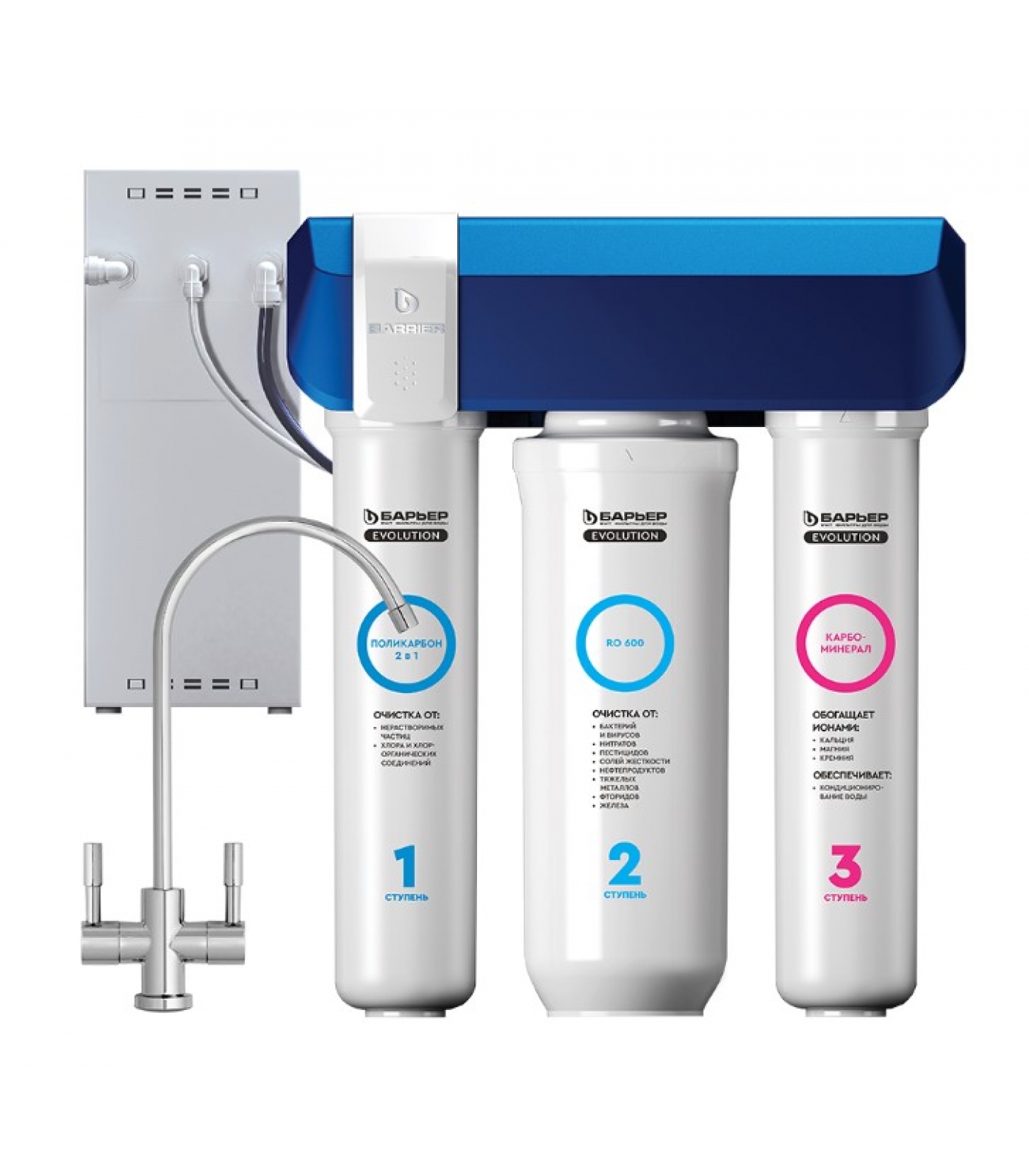 Система фильтрации обратного осмоса Барьер Evolution Osmo M, 3 ступени с насосом и краном