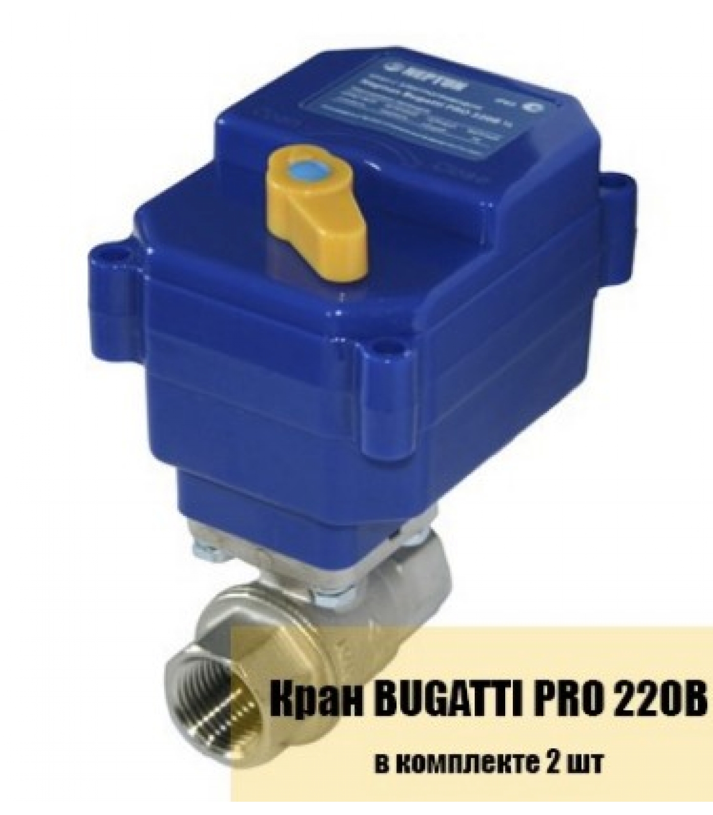 Шаровой кран с электроприводом, на который поступила команда модуля управления, блокирует подачу воду, если возникает протечка. Установка крана осуществляется на вводе воды в помещение.