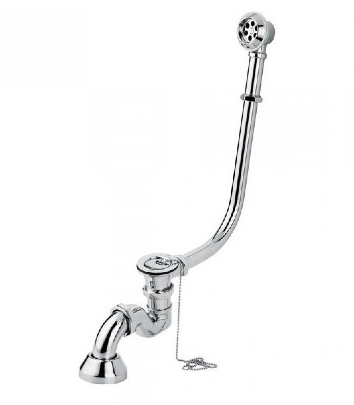 Слив-перилив NEWCAST изготовлен из металла, хромированное покрытие. Монтаж рассчитан на установку на ванну. Слив-перелив с донным клапаном, цепочкой и металлическим сифоном.